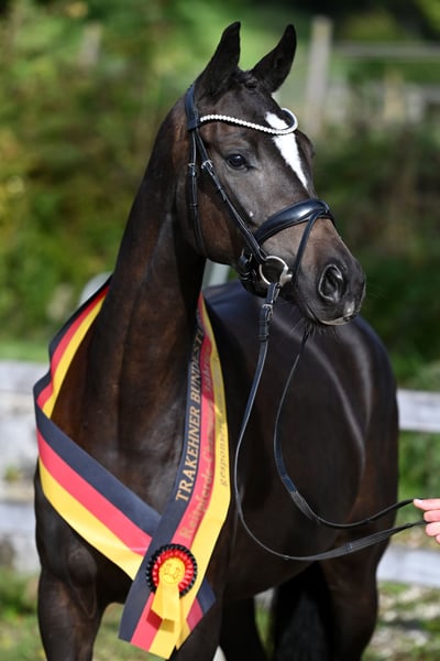 Glanzvoller kann der Auftritt einer der prominentesten Akteurinnen der an Höhepunkten reichen Trakehner Bundesstutenschau 2025 kaum sein: Luxus die bayrische ZSE-Siegerstute 2024, ist Mitglied der von nun an amtierenden Bundessiegerfamilie und Klassensiegerin. Luxus pur verkörpern auch ihre Vollschwestern: La Boum de Luxe als amtierende bayrische ZSE-Siegerstute und Vize-Jahressiegerstute und vor allem Luxusliebe II, deren Erfolgsbilanz in jungen Jahren als ZSE-Siegerstute, Vize-Jahressiegerstute, Vize-Bundeschampionesse und Trakehner Dressurpferdechampionesse unnachahmlich und kaum zu übertreffen ist. Die Stute wird anlässlich des Trakehner Hengstmarktes am 28.112025 bei einer Auktion versteigert, alle Informationen finden Sie unter: https://bid.trakehner.auction/auctions