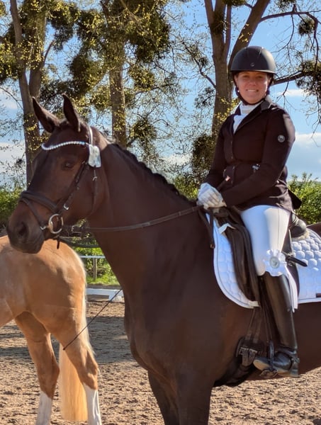 The 3-year-old Valentiana is a very athletic young mare with a lot of leg, big parts, three very tactful and good basic gaits. At the jump she shows a lot of overview, joy, ability and manner. Equipped with a wonderful interior! She is already convincing with a lot of rhythm and her fine, light manner under the rider. We ride our young horses very calmly and deliberately avoid an exciting performance. Her sire His Moment was the champion stallion at the Trakehner licensing and is the sire of three licensed stallions and various champion mares. His offspring also excel in sport. Her dam Valentine is a very modern daughter of the short Grand Prix successful elite stallion TSF High Motion and granddaughter of the multiple Grand Prix and Grand Prix Special successful Showmaster. Valentine has since produced several highly decorated foals at foal shows. She is a half-sister to the successful advanced (S) level dressage stallion Valpiano and the premium mares Vittoria, Veruschka, Vitalia I and II and Valenta. The Hämelschenburg mare family of Vilja by Julmond includes the proven sires Van Deyk (Grand Prix), Vincent, Valerian (HLP winner, advanced (S) level dressage, eventing) and Velasquez (medium (M) level show jumping) as well as Peter Thomsen's World Championship eventing horse Vilano.