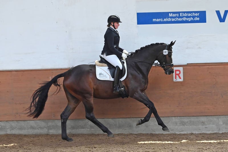 3-letnia Valentiana to bardzo atletyczna młoda klacz z dużą ilością nóg, dużymi elementami, trzema bardzo taktownymi i dobrymi podstawowymi chodami. W skoku pokazuje dużo przeglądu, radości, umiejętności i manier. Wyposażona we wspaniałe wnętrze! Jest łatwa w obsłudze i już imponuje rytmem i delikatnym, lekkim zachowaniem pod jeźdźcem. Na naszych młodych koniach jeździmy bardzo spokojnie i celowo unikamy ekscytujących występów. Jej ojciec His Moment był czempionem ogierów na licencjach trakeńskich i jest ojcem trzech licencjonowanych ogierów i różnych czempionek. Jego potomstwo również wyróżnia się w sporcie. Jej matka Valentine jest bardzo nowoczesną córką elitarnego ogiera TSF High Motion z krótkimi sukcesami w Grand Prix i wnuczką Showmastera z wieloma sukcesami w Grand Prix i Grand Prix Special. Od tego czasu Valentine wydała na świat kilka bardzo utytułowanych źrebiąt. Jest półsiostrą odnoszącego sukcesy na poziomie zaawansowanym ogiera ujeżdżeniowego Valpiano, a także klaczy premium Vittoria, Veruschka, Vitalia I i II oraz Valenta. Rodzina klaczy Vilja po Julmond z Hämelschenburga obejmuje sprawdzone ogiery Van Deyk (Grand Prix), Vincent, Valerian (zwycięzca HLP, ujeżdżenie na poziomie zaawansowanym (S), wkkw) i Velasquez (skoki przez przeszkody na poziomie średnim (M)), a także mistrza świata w wkkw Petera Thomsena - Vilano.