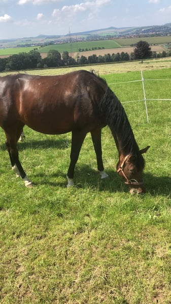 Biete meine liebe tragende Stute von saint cyr an . Sie wurde 5 jährig geritten zuhause Halle wie platzt . Hat nie Probleme gemacht hat dieses Jahr ein gutes stut Fohlen gekriegt. Ist wieder tragend für 2026 von Morisson nrw Landgestüt. Sie hat sich dieses Jahr leider auf der Wiese verletzt wurde behandelt das Bein ist jetzt ein bischen dicker läuft aber damit . Ist auf der Wiese mit allen verträglich gemischte Herde . Kennt 24/7 Weide wie boxenhaltung . Verkaufe nur wegen Bestands Verkleinerung Nachwuchs kann begutachtet werden . Platz vor Preis . Bitte nur ernstgemeinte Anfragen.