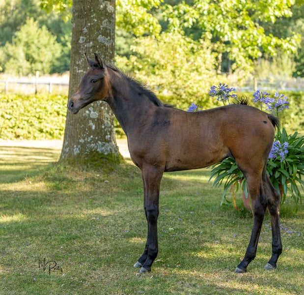 Aus erfolgreichem Züchterhaus steht hier eine genetische Rarität der Sonderklasse im Aufgebot. Dieses hervorragend entwickelte Stutfohlen in klarer Typprägung und großem Rahmen mit viel Bein ist aufgrund ihrer sportlichen Qualitäten prädestiniert, einen neuen Zweig in dieser Pedigree-Konstellation der Marke „besonders wertvoll“ entstehen zu lassen. Ihr nicht nur im Interieur vorbildlicher Vater Göteborg ist der einzige Vertreter der Hengstlinie des legendären Cancara. Die doppelt prämierte Mutter Hot Spirit stammt von Grafenstolz und ist selbst in Geländepferdeprüfungen bis Kl. L hoch platziert, Mutter von zwei gekörten Hengsten, drei prämierten Töchtern und drei bis Kl. M erfolgreichen Sportpferden. Die hoch dotierte Großmutter Hot Angel xx ist auch Mutter des viel zu früh abgetretenen Siegerhengstes Skatman (v. Sixtus), der in der Trakehner Zucht einen großen Klang hat und Dritter im Bundeschampionat der Geländepferde war.