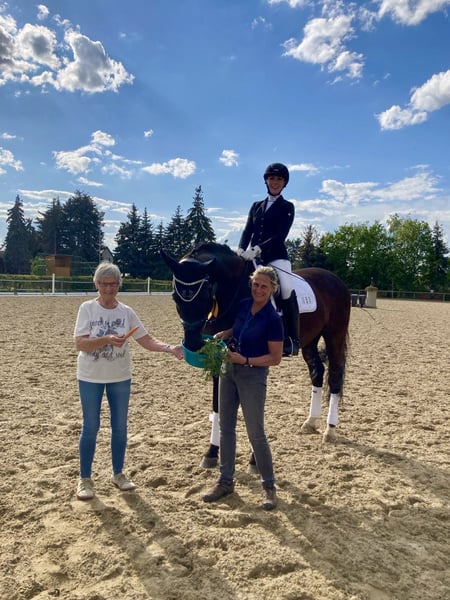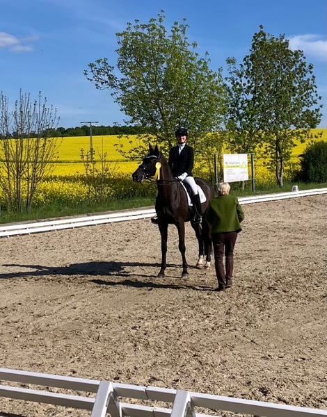 **14- jähriger Rapp- Wallach M* mehrfach siegreich** Ich habe mich schweren Herzens aufgrund von Schwangerschaft für einen Verkauf entschieden. Ich suche daher für meinen Wallach einen neuen Besitzer, der ihn ebenfalls als Familienmitglied ansieht und auch behandelt. Er ist seit 10 Jahren in meinem Besitz und ich habe ihn selbst ausgebildet. Er ist leichtrittig, lektionssicher und brav, hat aber auch viel Freude an kleineren Pacours. Auch als Juniorenpferd oder für Amateure geeignet. Für weitere Fragen gerne PN oder telefonisch. Was ich mir vorstelle: - Lebensstellung, kein Weiterverkauf - am besten Offenstallhaltung oder Paddockbox mit reichlich Auslauf TÜV wurde zuletzt 4 jährig durchgeführt, ohne Befund. Seitdem ist der Wallach in meinem Besitz und es bestand keine Notwendigkeit. Bei Interesse freuen wir uns auf Ihre Kontaktaufnahme, um weitere Details zu besprechen und einen Proberitt zu vereinbaren.