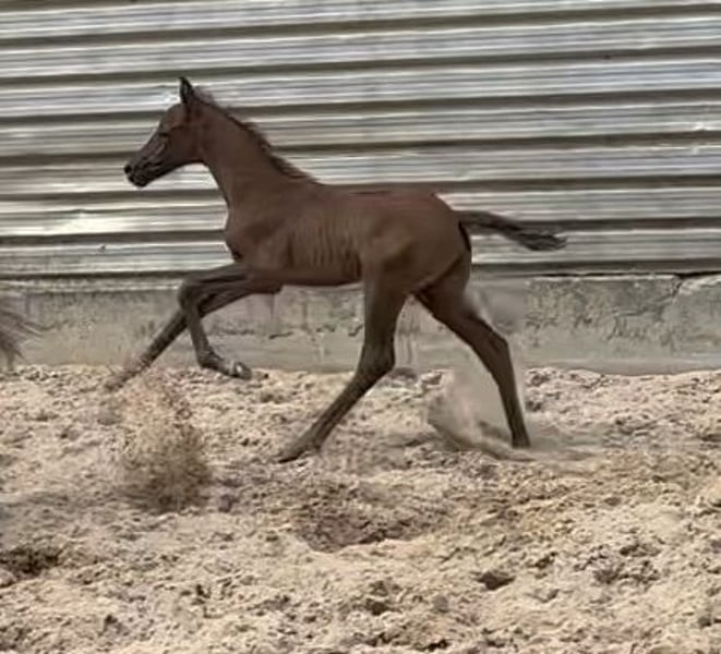 Este pequeño encanta a todos! Cría de caballo de deporte Trakehner, nacido el 20 de abril de 2024, en un hermoso color alazán (puede volverse gris) con estructura ósea robusta y un físico compacto sobre una base sólida y fuerte. Es hijo de Syriano/Gribaldi/Schwadroneur, de la línea Vita Allegra/Sanssouci. El pequeño muestra una gran cercanía y amabilidad hacia las personas, siendo a la vez curioso, atento y tranquilo. Cuenta con un trote excelente, con buena tendencia a la inclinación hacia adelante, además de un paso muy correcto. Un potro con carácter y calidad, que sin duda encontrará su camino en el deporte o como compañero versátil para todo tipo de disciplinas. La madre porta el título de premiada en la asociación. Es importante destacar sus buenas calificaciones en la prueba de rendimiento para yeguas en la estación, donde recibió un 9,0 por su carácter, un 8,5 por su disposición al trabajo, y calificaciones similares en movimiento, todas en el rango de 8.0 a 8.5. Además, en salto recibió un 8,5. El padre, Syriano, cuenta con un pedigrí que incluye a destacados sementales de renombre, ha tenido éxito en competición y ya ha producido descendencia de alta calidad y con resultados deportivos destacados. ¡Un potro fantástico, con todas las puertas abiertas, creemos!