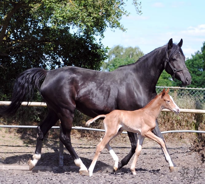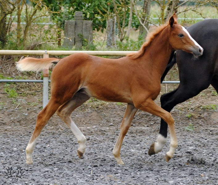 Shortly thereafter, the Lavinia daughters Lamara TN (premium, state premium mare, winner of the mare performance test) foaled by. Elite stallion Goldschmidt and La Bardolina TN by Elite stallion playwright. Her two fox-colored colts, which are of their style, both in terms of color and type as well as movement, cannot deny their sire Le Chevalier TN. From year to year, the stallion shows his stamp quality more and more clearly in his foals and thus reliably fulfills the wishes and requirements placed on him. The agile Lamara foal Le Vite TN is very similar to last year's full brother Le Beau TN and gives great hope for a similarly high rating. In his box as well as outdoors, he has already shown himself to be a true jumping field with very good quality of movement.