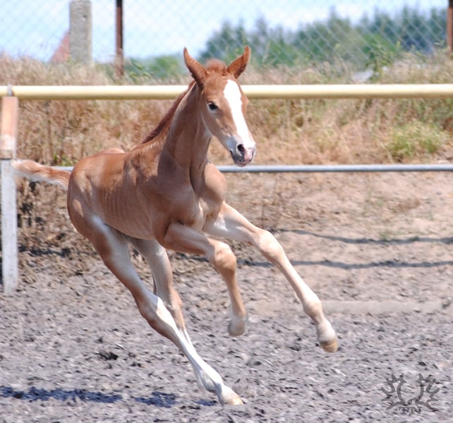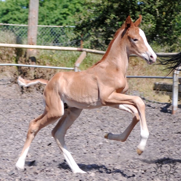Kurz aufeinander fohlten die Lavinia-Töchter Lamara TN (Prämien-, Staatsprämienstute, Siegerin Stutenleistungsprüfung) v. Elitehengst Goldschmidt und La Bardolina TN v. Elitehengst Dramatiker. Ihre beiden fuchsfarbenen Hengstfohlen, die von ihrer Machart, sowohl was Farbe und Typ als auch Bewegung angeht, können ihren Vater Le Chevalier TN nicht verleugnen. Der Hengst zeigt von Jahr zu Jahr in seinen Fohlen immer deutlicher seine Stempelqualität und erfüllt damit zuverlässig die an ihn gestellten Wünsche und Anforderungen. Das agile Lamara-Fohlen Le Vite TN gleicht seinem letztjährigen Vollbruder Le Beau TN sehr und gibt große Hoffnung auf eine ähnlich hohe Bewertung. In seiner Box wie auch im Freien zeigte er sich bereits jetzt schon als ein wahrer Springinsfeld mit sehr guter Bewegungsqualität. Le Vite TN, ein Fuchs von strahlender Schönheit, im klassischen Trakehner-Typ stehend und mit sehr guten Grundgangarten ausgestattet, verspricht später unterm Sattel ein echter Hingucker zu werden. Der Vater Le Chevalier TN ist Prämienhengst und war sowohl Sieger der Nurmi-Prüfung als auch der Hengstleistungsprüfung für Geländepferde in Marbach. Auch die Mutter Prämien- und Staatsprämienstute Lamara TN v. Elitehengst Goldschmidt, dem einzigen Sohn des Grand Prix-Hengstes Biotop war Siegerin der Stutenleistungsprüfung in Hannover. Le Vites elitäre Abstammung, Typ, Korrektheit des Gebäudes und Grundgangart sind hervorragende Voraussetzungen für alle Anforderungen als späteres Reitpferd. Wie schon ihre Fohlen aus den Jahren zuvor erhielt auch Lamaras Le Vite auf der diesjährigen Fohlenschau eine Prämierung. Weitere Informationen über unser Gestüt finden Sie auf unserer Homepage www.gestüt-terranova.de.