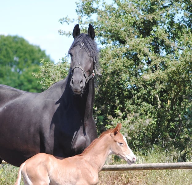 Les filles de Lavinia, Lamara TN (jument primée, primée d'État, gagnante du test de performance des juments) par l'étalon d'élite Goldschmidt et La Bardolina TN par l'étalon d'élite Dramatiker, ont mis bas peu de temps après. Ses deux poulains alezans, dont la facture, tant au niveau de la robe et du type que du mouvement, ne peut renier son père Le Chevalier TN. D'année en année, l'étalon montre de plus en plus clairement dans ses poulains sa qualité de timbre et répond ainsi de manière fiable aux souhaits et aux exigences qui lui sont posés. Le poulain agile de Lamara Le Vite TN ressemble beaucoup à son propre frère de l'année dernière Le Beau TN et donne de grands espoirs pour une évaluation aussi élevée. Dans son box comme à l'extérieur, il s'est d'ores et déjà montré comme un véritable sauteur doté d'une très bonne qualité de mouvement. Le Vite TN, un alezan d'une beauté rayonnante, debout dans le type classique du trakehner et doté de très bonnes allures, promet d'être un véritable accroche-regard plus tard sous la selle. Le père Le Chevalier TN est un étalon primé et a été vainqueur de l'épreuve Nurmi ainsi que de l'épreuve de performance des étalons pour les chevaux de terrain à Marbach. Sa mère, Lamara TN, jument primée et primée d'État par l'étalon d'élite Goldschmidt, fils unique de l'étalon de Grand Prix Biotop, a également remporté le test de performance des juments à Hanovre. L'ascendance élitaire de Le Vite, son type, la correction de sa conformation et ses allures de base sont d'excellentes conditions pour répondre à toutes les exigences en tant que futur cheval de selle. Comme ses poulains des années précédentes, Le Vite de Lamara a été récompensée lors du concours de poulains de cette année. Vous trouverez de plus amples informations sur notre haras sur notre site Internet www.gestüt-terranova.de.