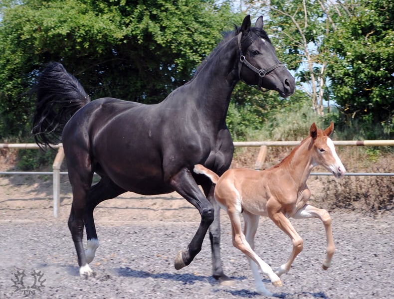 Córki Lavinii, Lamara TN (klacz premium, klacz państwowa, zwyciężczyni próby dzielności klaczy) po elitarnym ogierze Goldschmidt i La Bardolina TN po elitarnym ogierze Dramatiker, urodziły się krótko po sobie. Jej dwa kasztanowate ogierki, które są bardzo dobrze wykonane pod względem umaszczenia, typu i ruchu, nie mogą odmówić swojemu ojcu Le Chevalier TN. Ogier ten z roku na rok coraz wyraźniej pokazuje swoją jakość w źrebiętach i tym samym niezawodnie spełnia stawiane mu życzenia i wymagania. Zwinny źrebak Lamara Le Vite TN jest bardzo podobny do swojego zeszłorocznego pełnego brata Le Beau TN i daje duże nadzieje na równie wysoką ocenę. Zarówno w boksie, jak i na zewnątrz, pokazał już, że jest prawdziwym skoczkiem o bardzo dobrej jakości ruchu. Le Vite TN, kasztan o promiennej urodzie, stojący w klasycznym typie trakeńskim i wyposażony w bardzo dobre podstawowe chody, zapowiada się na prawdziwą atrakcję pod siodłem. Ojciec Le Chevalier TN jest ogierem premium i był zwycięzcą zarówno testu Nurmi, jak i testu wydajności ogierów dla koni cross-country w Marbach. Matka, premiowana i państwowa klacz Lamara TN po elitarnym ogierze Goldschmidt, jedynym synu ogiera Grand Prix Biotop, była również zwyciężczynią próby dzielności klaczy w Hanowerze. Elitarny rodowód, typ, prawidłowa budowa i podstawowe chody Le Vite są doskonałymi warunkami wstępnymi dla wszystkich wymagań jako przyszłego konia wierzchowego. Podobnie jak jej źrebięta z poprzednich lat, Le Vite od Lamary również otrzymała nagrodę na tegorocznym pokazie źrebiąt. Więcej informacji o naszej stadninie można znaleźć na naszej stronie internetowej www.gestüt-terranova.de.