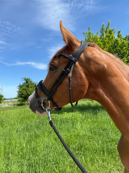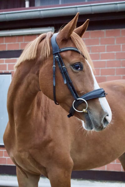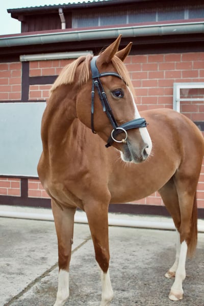 For sale is Pompidou, a colorful chestnut gelding and son of the successful Grand Prix dressage stallion Zauberdeyk. The four-year-old Trakehner measures currently 16.0 hh. Pompidou has been gently backed since June. He demonstrates a willing attitude to learn, is absolutely well-behaved, and impresses with three very good basic gaits – an excellent foundation for further training. In daily handling, he is a real sweetheart: very human-oriented, curious, and completely uncomplicated. Outside the stable, he also shows confidence – he loads calmly onto the trailer and has already mastered his first outing on the cross-country course with flying colors. Pompidou has a knot on his leg and is therefore being sold well below value. He is now looking for a home that can approach this without prejudice. The gelding is sold directly by the breeder and only to the best hands. Serious inquiries are welcome to try him out, and current videos will follow.