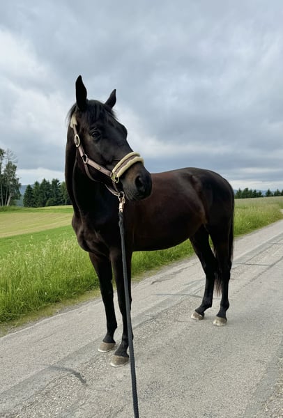 Argeios es un Trakehner de 4,5 años, un macho bien desarrollado con buena presencia. Ha sido montado y se muestra muy tranquilo y amigable en el manejo diario. A pesar de su edad, no es un caballo para principiantes y necesita un jinete que le brinde seguridad. Es ideal para jinetes experimentados que buscan un joven compañero de ocio motivado, a quien deseen seguir formando. Argeios conoce el terreno tanto solo como en grupo y ya ha aprendido a saltar pequeños obstáculos. Lamentablemente, se vende exclusivamente como caballo de ocio debido a un diagnóstico veterinario (ligera aparición de joven espolón), por lo que su precio es significativamente inferior a su valor real. Se le ha presentado regularmente al herrador, está desparacitado y vacunado. Argeios solo se entregará en manos cariñosas y adecuadas. ¡Si estás seriamente interesado, me alegraría recibir un mensaje o una llamada!
