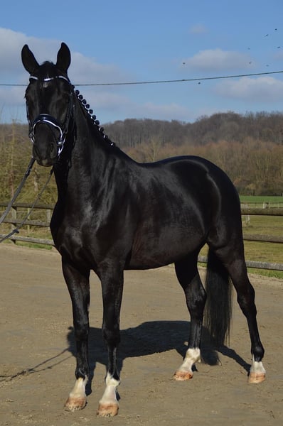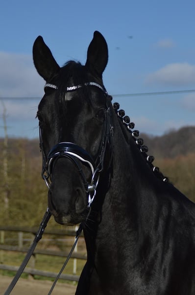 For sale is a stunning Trakehner gelding by Hirtentanz. "Tyson" is a true dream horse for the ambitious rider. He was gently backed by the breeder and seller at the age of 3 and has already achieved multiple placements in A-show jumping as well as A-dressage. With a height of 1.66m and a glossy black coat, he is an absolute eye-catcher. Tyson is also already competing in eventing. His wonderful temperament leaves nothing to be desired. Whether at competitions or in everyday handling, he always keeps a clear head, is super well-behaved, and easy to manage. Under saddle, he shows enthusiasm and learns quickly. It is a joy to ride this ambitious horse. He is perfect as a junior or transition horse for the sport. He is loading and farrier-friendly. A veterinary examination from 2024 with no findings is available. This advertisement was created on behalf of the breeder. For serious inquiries, please contact by phone: 0172/5377106.
