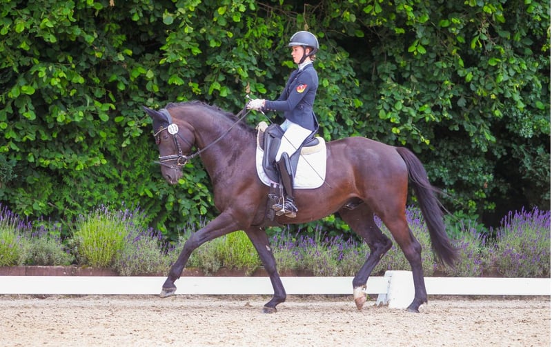 Zum Verkauf angeboten wird dieser bereits hoch erfolgreiche 7-jährige Trakehner Wallach von Millennium x Heops, welcher bereits auf eine sehr erfolgreiche sportliche Laufbahn zurück blicken kann. So konnte sich dieser Wallach bereits international platzieren und national Dressurpferdeprüfungen und normale Dressurprüfungen bis zur Klasse L* gewinnen& das mit Noten bis 8.5! "Maximus" ist stets unerschrocken und keineswegs Umwelt orientiert. Er konzentriert sich immer auf seinen Reiter und ist gewillt alles richtig zu machen. Die Lektion der Klasse L beherrscht er sehr sicher, wodurch er auch für Reiter geeignet ist, die ein Pferd für den Einstieg in den Turniersport suchen. Er lässt sich selbstverständlich gut verladen, ist verträglich mit anderen Pferden& brav beim Schmied. Ebenfalls ist "Maximus" für Ausritte und Springen zu haben, hier zeigt er an beiden Dingen große Freude. Er ist sehr menschenbezogen und äußerst lieb im Umgang. Ein guter Tüv liegt natürlich vor. "Maximus" steht in 35708& kann dort jederzeit probegeritten werden. Bei weiteren Fragen& Interesse: 017620052380, auch WhatsApp möglich.