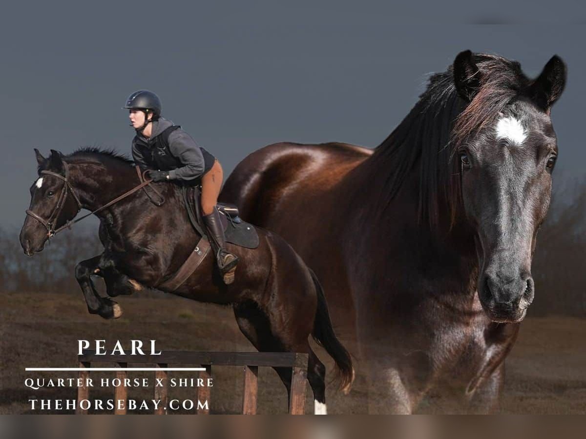 If you’re searching for a big, beautiful, and talented mare, Pearl truly checks every box. She’s as pretty as her name and carries a happy, willing attitude wherever she goes. Pearl is a 4-year-old, double-registered Quarter Horse × Shire mare standing 15.2 hands. She is versatile and trustworthy, and she confidently takes on any job assigned to her. Whether you’re riding in new terrain or familiar ground, Pearl stays calm, steady, and fun to ride. She has traveled from the sandy country of South Texas to the hills of Missouri and handles every environment with ease. Pearl has been ridden for hog hunting and is comfortable around hunting dogs. She has also completed extensive ranch work, including roping cattle outside. She is safe and reliable for riders of all levels and remains the same dependable horse every day, even with time off. Over fences, Pearl is a natural in every way. She has jumped up to 3”3 and is always brave, honest, and dependable. She is so much fun to jump and feels solid under you over every, and any fence. She would make a fantastic hunt or eventing partner. She has the athleticism to clear all fences and obstacles, yet remains safe and quiet in all situations. She stands quietly for saddling and tying, behaving like a perfect lady on the ground. Pearl offers the ideal balance of gentleness, athletic ability, and intelligence. She’s the kind of horse you look forward to catching after a long day—one you can truly relax and enjoy. Pearl is an easy keeper with no maintenance requirements. A clean vet check is on file.