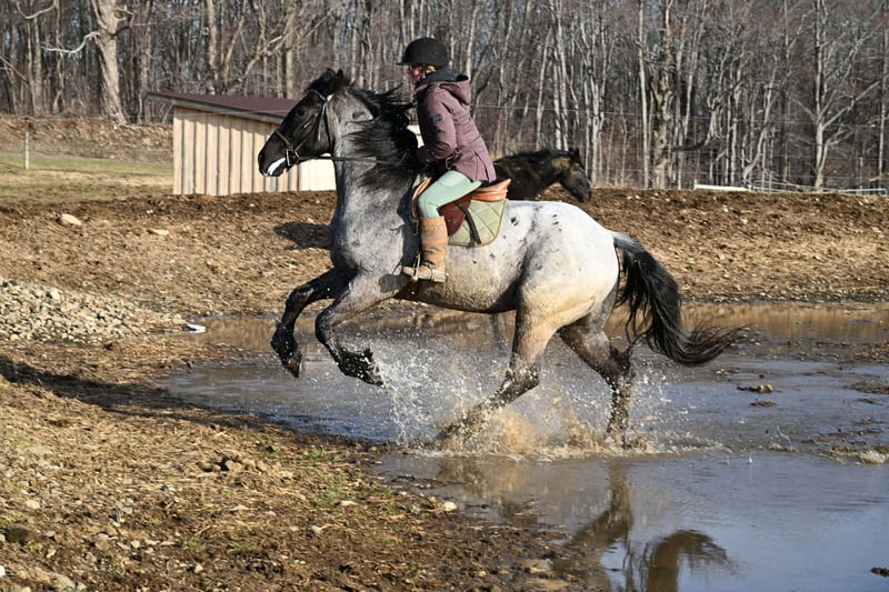 "AVAILABLE ON ONLINE HORSE AUCTION AT www DOT PlatinumEquineAuction DOT com BIDDING OPEN NOW thru SUNDAY | APRIL 12TH! *Final price will be determined on auction site* CONSIGNOR CONTACT INFO: Wolcott's Versatility Horses and Training 585-734-0169 LOCATION: Warsaw, NY **2 Week Guarantee** Meet Azur, a sharp-looking 4-year-old blue roan draft cross gelding standing 16.1h. He’s the kind that turns heads, but more importantly, he’s got the brain to match. Azur is sure-footed, brave, and takes everything in stride. He’s currently wearing shoes due to our terrain, but he has good, solid feet and clean legs. We’ve had him out on the obstacle course, and nothing seems to bother him; he’ll carry a flag, drag a tarp, and step over or through whatever you point him at without hesitation. He’s been used out on the trails both alone and in a group, and goes wherever you ask without a fuss. Azur is the type that wants to please and shows up with a good attitude every ride. He’s also been around plenty of wildlife, water, dogs, and farm equipment, all part of his normal day. On the ground, he’s easy to be around with good manners. He stands well for grooming, tacking, the farrier, and loads and trailers quietly. He gets along well with other horses and respects fencing. Happy in a stall or out in the pasture. Under saddle, Azur is a solid, comfortable ride with a nice walk, trot, and canter. He rides in a snaffle, stays soft in the mouth, and is easy to get along with. Azur has been used for our therapeutic riding program, and the riders all love him. Azur has been out fox hunting and on a low level eventing course. He stands for mounting and dismounting and knows how to take a joke. He has been in the arena with 15 other horses and doesn’t get bothered by other horses going by him. We have also used Azur for our sleigh rides this winter as a team, and he did an excellent job. If you’re looking for a young horse with a great start, a level head, and the kind of attitude that’ll take him in any direction, Azur is one you won’t wanna miss. Follow us on Facebook and our Website! Contact Dayton at 585-734-0169 for more information, located in Warsaw, NY.