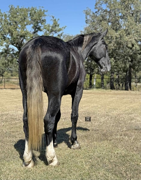 ONLINE AUCTION Place your bids at www.PlatinumEquineAuction.com Starting Bid $3500 Auction ends November 16th, 2025 Need a new saddle? Check out White Rock Saddles on our website or Facebook Slate is one of the most elegant draft crosses we have had the pleasure of offering. Standing at 16.1 hands and a stunning steel gray this coming 4 year old Percheron cross shows a lot of promise to make a top performance type horse. We could easily see him as a fox hunter or even hunter/jumper. He has beautiful movement, and naturally arched neck, collected head set, and lots of expression. Slate is absolutely gentle with no funny business to him. He is sweet and kind and has great ground manners. We have lightly started him over fences and he did not disappoint. His gaits float under both English and Western tack. He is very light and responsive to cues. Slate stands quietly for the mounting block. We have hauled him to the ranch and trail rides and he is excellent outside. He is not spooky and will go anywhere asked of him. He is sure footed and can climb up and down anything. Slate loves the ball and has mastered the art of “kicking” it. Slate is broke to drive both single and double. He is traffic safe and has been ridden and drove down the highways and back roads. Slate is sound in every way. FMI call/text Chanel with Holland Horse Company 559-978-6320. We are happy to answer questions and help arrange shipping! Located in Jacksboro, TX. ONLINE AUCTION Place your bids at www.PlatinumEquineAuction.com Starting Bid $3500 Auction ends November 16th, 2025 Need a new saddle? Check out White Rock Saddles on our website or Facebook