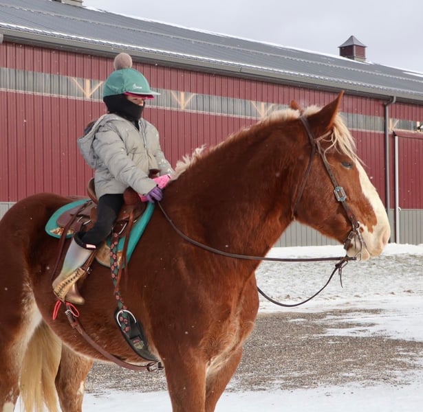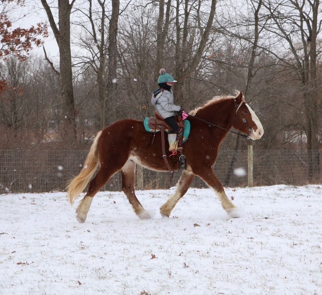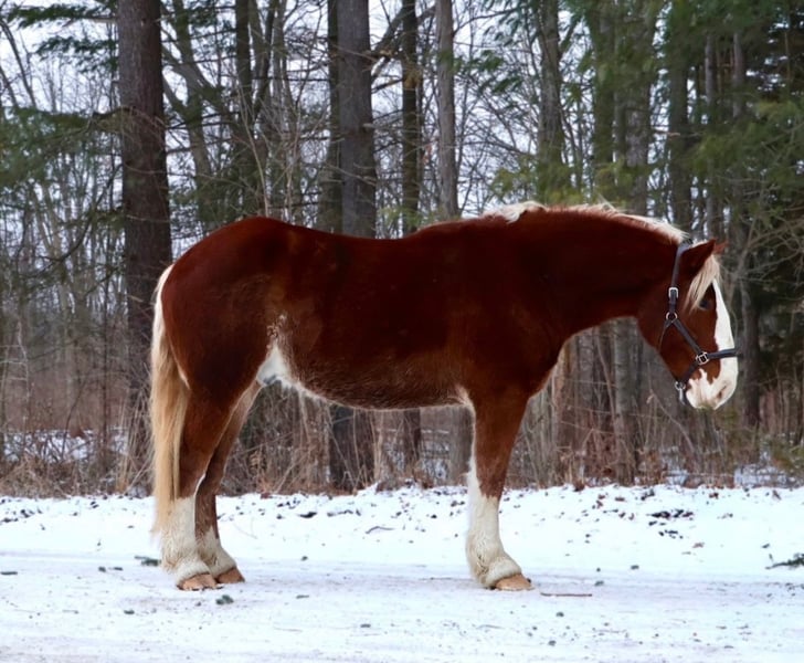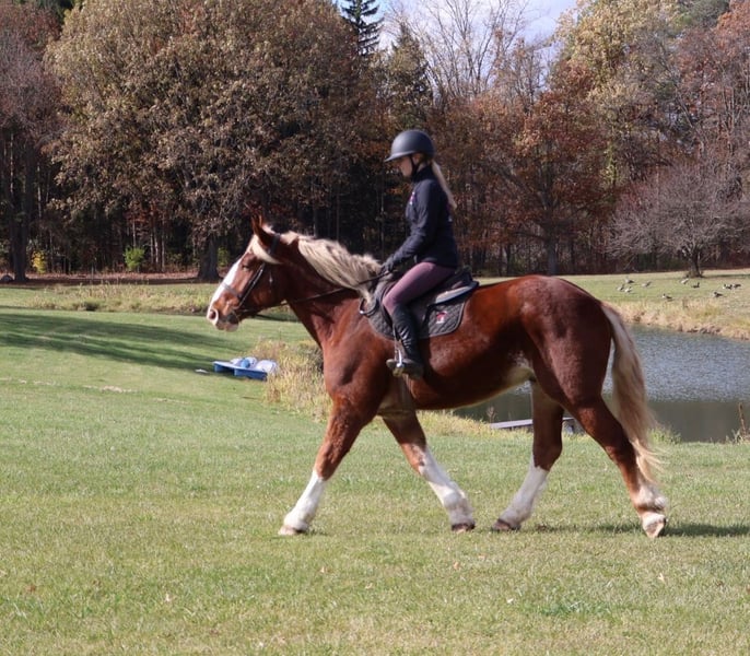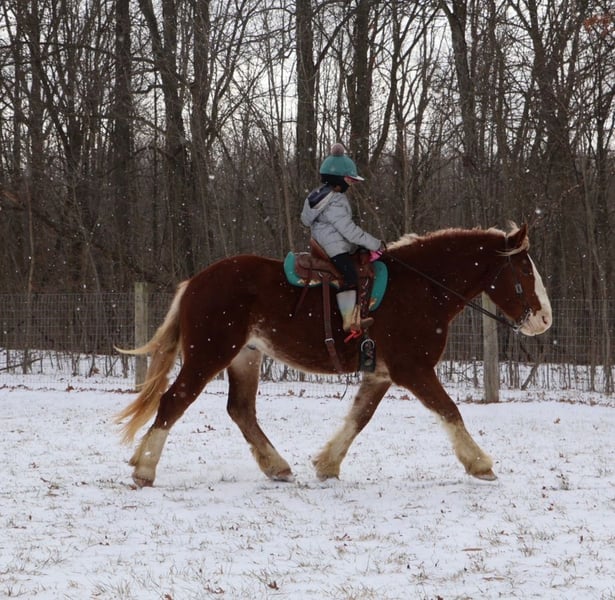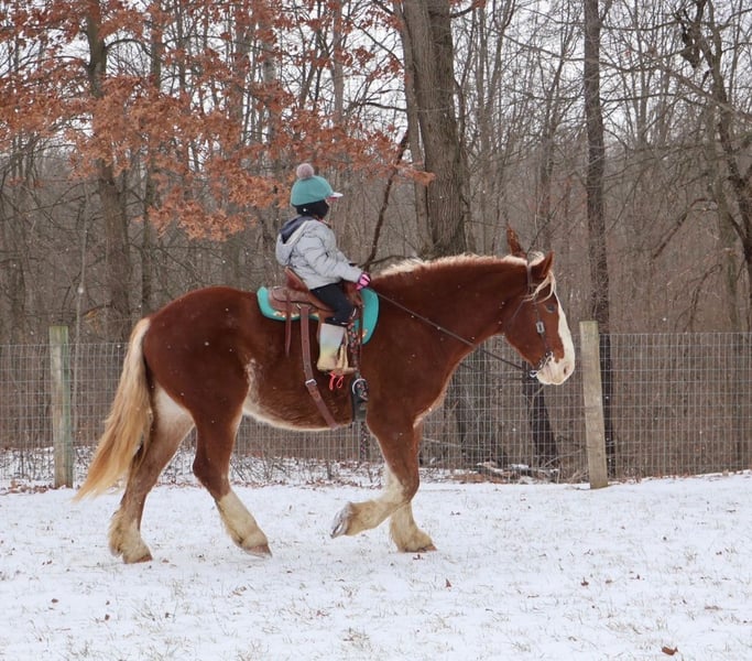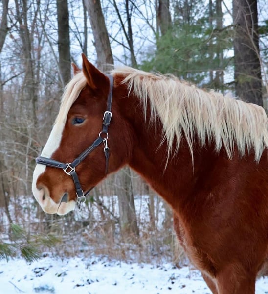 💎 𝐓𝐇𝐄 𝓓𝓲𝓪𝓶𝓸𝓷𝓭 𝐒𝐇𝐎𝐖𝐂𝐀𝐒𝐄 💎 Happening now thru MONDAY | FEBRUARY 23rd - Available EXCLUSIVELY on HorseBid's website! For more details and to register visit: www.Horsebid.com CONSIGNOR CONTACT: Ellesse Schwartz 248-390-6831 LOCATION: Howell, MI BREED: Draft Cross REGISTERED: No COLOR: Chestnut HEIGHT: 16.2 AGE: 5 GENDER: Gelding I am proud to introduce you to Koda! He’s something special, something unique and something with a huge heart. Koda has the appearance of a teddy bear with eyes that bring comfort with a glance. Koda ia a 16.2hh (Belgian 75%, QH 25% cross) who is 5 years old. He’s a stunning light chesthnut with lots of chrome and a stunning flaxen mane and tail. Koda is a very substantial guy. He has great conformation, solid bone structure, excellent hooves and he’s well muscled. Koda is loaded with personality. He gets along with most everything in the pasture from the cows to the donkeys; he’s everyone’s best friend. He can live in or out and is content either way. He loves people and attention. Kids as young as 5 can ride him independently. Koda stands like a rock for grooming tacking and mounting. Under-saddle he comes equipped with 3 stellar gaits, a quiet walk, a floaty trot and the most comfortable canter around. His gaits are all very adjustable. He works off of your seat and leg very well. Koda has been exposed to all types of obstacles such as balls, tarps, pool noodles, bridges and pedestals. He works off leg and seat so well you can pull the bridle and just clip a lead rope to the halter. Koda is more whoa than go. Once you climb on his back this is the horse that will make you want to ride! He’s seen the mountains, open fields, roads, water and woods. He’s been out on several hunter paces. Koda has been camping and picketed and is always game for an adventure. Koda also loves to drive! He’s pulled a carriage in weddings, parades and just around the farm! This boy has great color, excellent conformation, excellent training, loads of experience and a mind to match! He lives in Howell, MI 48855. Call or text Ellesse Schwartz at 248-390-6831 for more information.