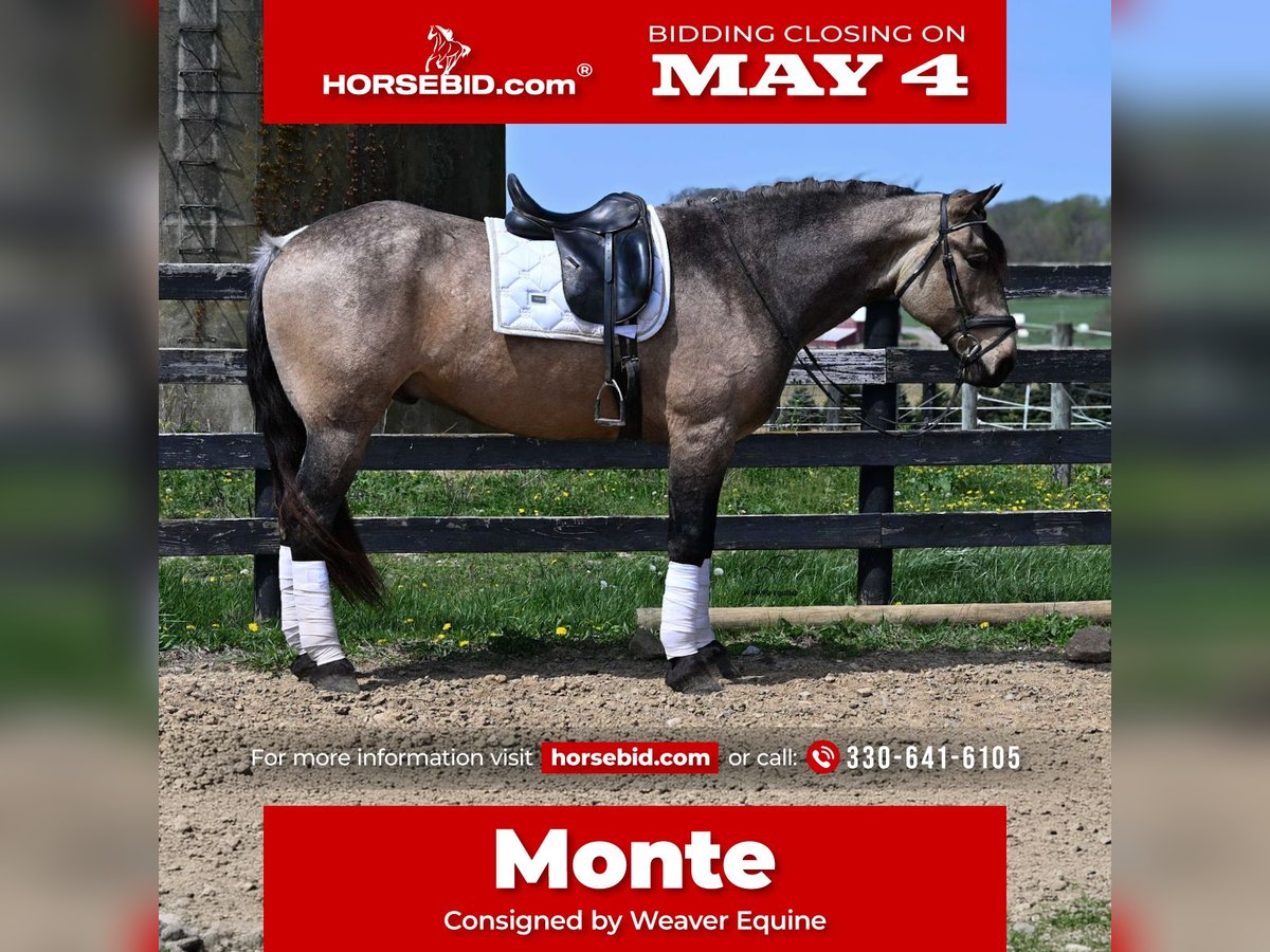 ▪️▫️◾️𝐭𝐡𝐞 𝑴𝒂𝒚 𝐒𝐞𝐥𝐞𝐜𝐭◾️▫️▪️ Happening now thru MONDAY | MAY 4th - Available EXCLUSIVELY on HorseBid's website! For more details and to register visit: www.Horsebid.com CONSIGNOR CONTACT: Weaver Equine 330-641-6105 LOCATION: Fredericksburg, OH BREED: Draft Cross REGISTERED: No COLOR: Buckskin HEIGHT: 16.2 AGE: 5 GENDER: Gelding Monte is a gorgeous buckskin colored draft cross gelding. He is 5 years old and a dream to ride. He is great out on the trails, in the arena, and on the roadways! He will look a nice circle in the arena. He will pick up both leads correctly. He stops and backs up nicely when asked. Neck reins and side passes. He will happily stand at a mounting block. Easily open and close gates from on top. He does not mind a tarp or flag. He is not easily phased and so much fun to ride! Monte is a pro on the trails as well! He will happily plod along to your heart's desire. He conquers the hills with ease! He crosses creeks and steps over logs without a fuss. Monte is super sensible and great all around! He is traffic safe. He stands well. He is easy to handle on the ground as well. He will stand to tack and groom. Does not mind being cross-tied but will ground tide as well. He trailer loads easily. He does well with other horses and animals. Monte is currently searching for his new Rider and is ready to go in any direction you point him! Reach out today at 330-641-6105 for further details! We look forward to hearing from you!