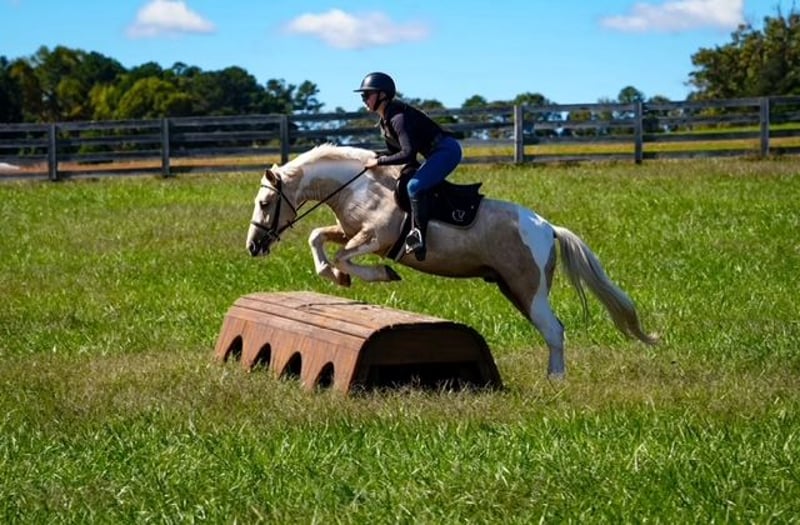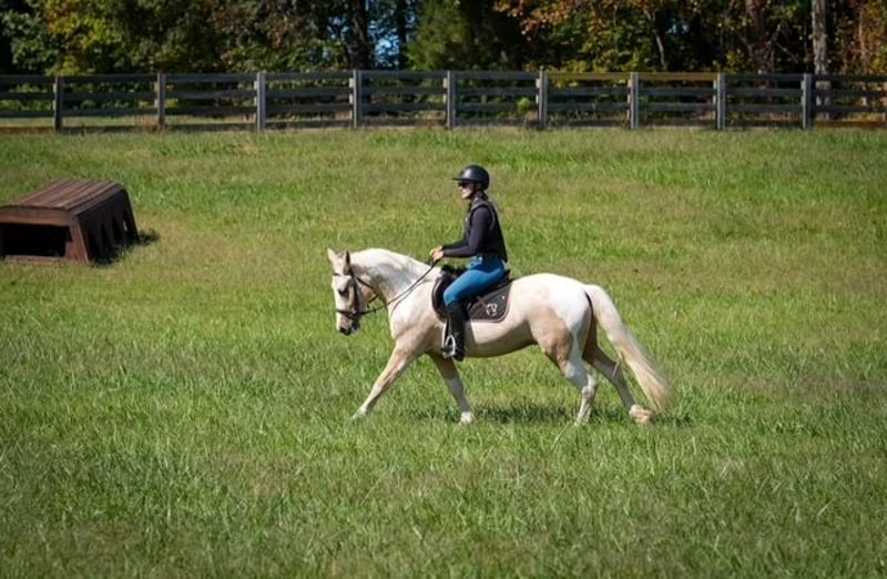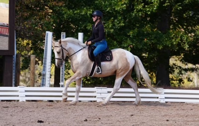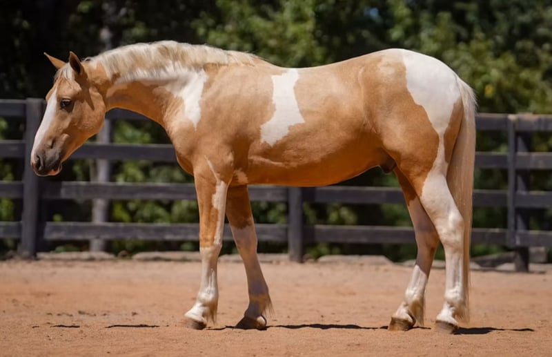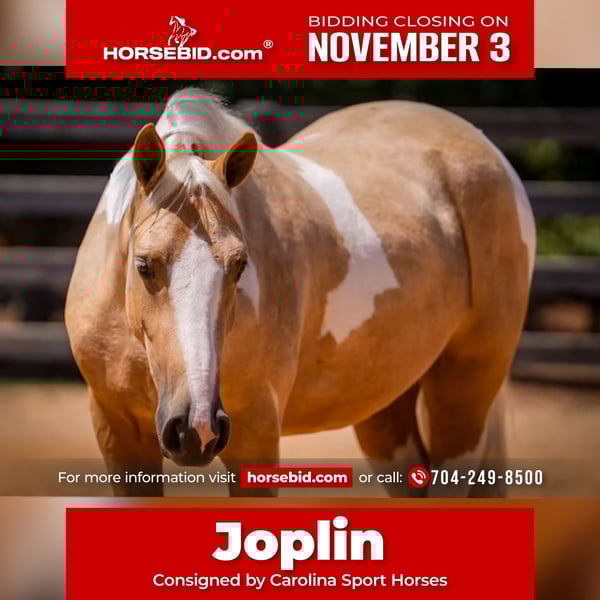 ⚜️𝐓𝐇𝐄 𝐅𝐀𝐋𝐋 𝐇𝐄𝐑𝐈𝐓𝐀𝐆𝐄 𝐂𝐋𝐀𝐒𝐒𝐈𝐂⚜️ Happening now thru MONDAY | NOVEMBER 3rd - Available EXCLUSIVELY on HorseBid's website! For more details and to register visit: www.Horsebid.com CONSIGNOR CONTACT: Carolina Sport Horses 704.249.8500 LOCATION: Clover SC BREED: Draft X REGISTERED: No REGISTERED NAME: Joplin COLOR: Palomino Paint HEIGHT: 14.2 AGE: 5 GENDER: Gelding Joplin is a 5 year old Quarter Horse x Halflinger standing 14.2 hands high. "Wow!" is what everyone thinks when they meet Joplin. He is a gentle, loving, showstopper of a horse. He has the education, the experience, and most importantly, the factor of safety. Climb on and go on any adventure and know you have a solid, sensible horse beneath you. The sky is the limit when you partner with Joplin. He knows all of the moves in the ring, is as sure footed as they come on the trails, and is just simply fun to ride and be around. He wants to be everyones best friend, and will be a trustworthy partner for years and years to come, no matter what adventures you want to go on. In the ring, Joplin is like no other draft cross you've seen. He has every button one could want, while still being gentle enough for the kids to take their weekly lessons on. He has the most incredible canter, with near perfect transitions. He is well on his way to performing pirouettes, knows all the lateral work, and even has a lead change. There are few horses with the range that Joplin has. He can complete a dressage test, jump around the cross country field, teach the kids lessons, and has even been used for rounding up cattle! If you can dream it up, you can do it with Joplin. We see so many different horses every year, but there are very few horses that truly can pick up any discipline and do with the ease and confidence that Joplin does. On the trails, Joplin is the number one trail master. Point him at anything, and he will go. He is brave, he is sure footed, and he is safe. There is no water too deep, hill too steep, or task too daunting. If trail blazing isn't your thing, he is equally capable and happy doing a hack around the farm with friends after a lesson, or going on a sunset stroll. The kids love to take him out into the woods after their ride and pop over the logs and coupes and play Saddle Club. On the cross country field, Joplin is brave and easy. He has the scope for any fence, and is as brave as they come. In the barn, Joplin is the most loving horse around. He would rather live in your house than the barn, and is the first to the fence to come in and get attention. He stands to be bathed, clipped, tacked, and groomed. He is used to the kids climbing all around him, and he is always polite and gentle. Joplin lives out, weather permitting, and is a good boy when stalled. He goes out in a mixed herd and gets along well with everyone. He has no vices, quirks, or funny business, and is an easy keeper that's a pleasure to have in the barn. Joplin is the type of horse that comes around once in a blue moon. There is not another horse like him, and I'm not sure we will ever be able to find anything even close. From his looks, to his personality, the way he rides, and his brain, Joplon is absolutely one of a kind. Joplin is available to be seen at our farm in Clover, SC by appointment.