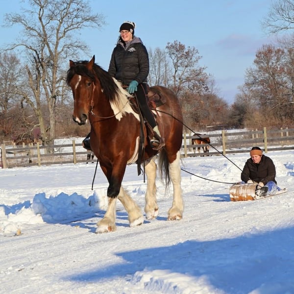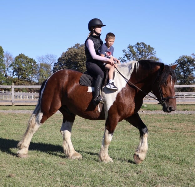 ❤️🔥𝑩𝒆 𝑴𝒊𝒏𝒆 𝐒𝐄𝐋𝐄𝐂𝐓❤️🔥 Happening now thru MONDAY | FEBRUARY 9th - Available EXCLUSIVELY on HorseBid's website! For more details and to register visit: www.Horsebid.com CONSIGNOR CONTACT: Ellesse Schwartz 248-390-6831 LOCATION: Howell, MI BREED: Spotted Draft REGISTERED: No REGISTERED NAME: Charles COLOR: Tri Colored paint HEIGHT: 17 AGE: 6 GENDER: Gelding Would you be mine? We would love to introduce Blackstones Charles. This 6 year old 17hh spotted draft gelding has it all. From his captivating personality to his stunning conformation and painted color. Charles lacks nothing. Charles is the type of horse who wants to be your best friend. He plays well with all the others outside and will catch you when you walk to the pasture. Charles is extremely well broke. He walk, trots, canters and stops on a dime. His transitions are flawless both upward and down. Charles steers off seat and leg so well you don’t even need a bridle. He will gladly take a bit, snaffle or shank he’s not fussy or just pull the bridle right off and he steers with all leg ques. He builds you up every ride and makes you want to get on. Charles has loads of experience out on the trails from the mountains of MO to the open fields of MI he’s seen it. Water, deep woods, roads, wildlife no problem. Charles has been ridden in groups of 40 horses. He will take any place you ask in the group and is not one to get worked up. He’s also been out alone. He’s been driven single and double. He has worked in busy city's, in traffic and crowds of people. He stands to harness. He stands at stop signs and he will stand for passengers to get on and off the carriage. He has a great amount of training in the arena as well. He will easily steep into the lope, and can canter small circles on both leads. Charles is very balanced and light on his feet. He’s completed our desensitizing program. Pool noodles, tarps and bridges are all no problem for him. He is a very brave horse. Charles is the horse to teach you the ropes, the one you can depend on and he’s loaded with personality. He is sure to win you over with one glance into his big soft eyes! Charles lives in Howell, MI. Please call or text Ellesse Schwartz at 248-390-6831
