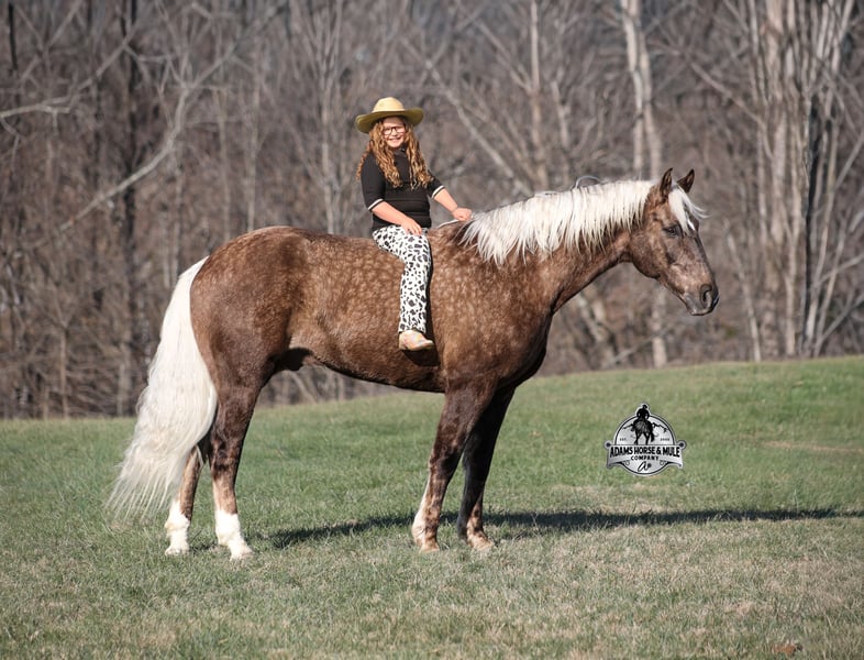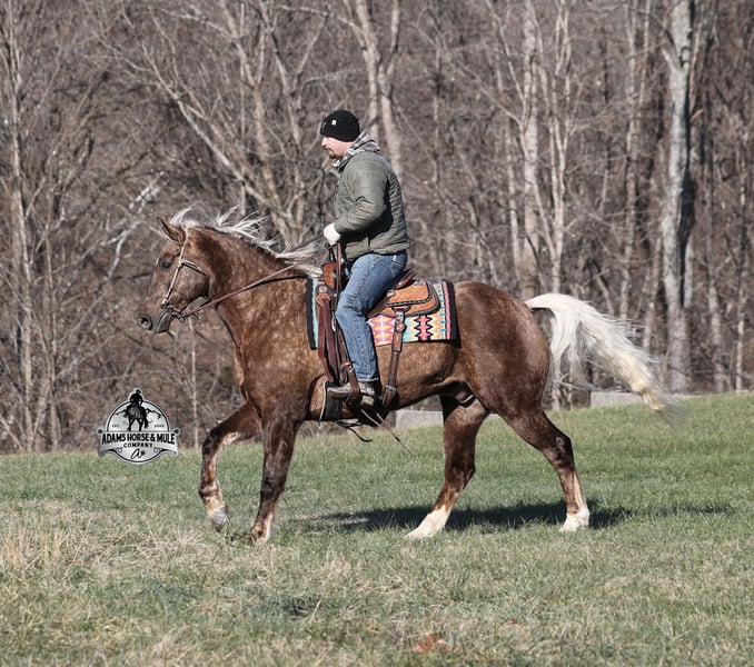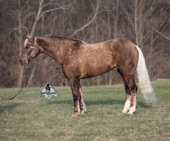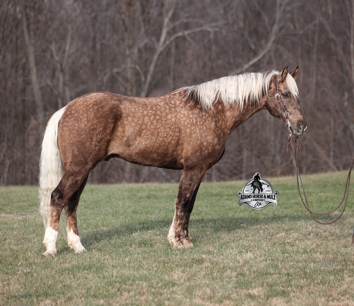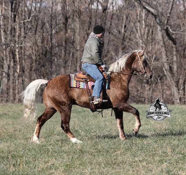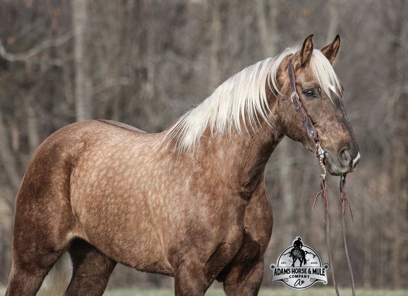 𝐀𝐝𝐚𝐦'𝐬 𝐇𝐨𝐫𝐬𝐞 & 𝐌𝐮𝐥𝐞 𝐂𝐨𝐦𝐩𝐚𝐧𝐲'𝐬 ✷𝑬𝒗𝒆𝒓𝒚 𝑴𝒊𝒍𝒆 𝑨 𝑴𝒆𝒎𝒐𝒓𝒚✷ 𝐄𝐗𝐂𝐋𝐔𝐒𝐈𝐕𝐄 𝐒𝐀𝐋𝐄 Happening now thru MONDAY | FEBRUARY 2nd - Available EXCLUSIVELY on HorseBid's website! For more details and to register visit: www.Horsebid.com CONSIGNOR CONTACT: Adams Horse and Mule Company 606-308-2461 LOCATION: Mt. Vernon, KY BREED: Draft Cross REGISTERED: No COLOR: Silver Dapple Chocolate HEIGHT: 16 AGE: 7 GENDER: Gelding If you have a sweet tooth and just need a little chocolate in your life, Copper is a milk chocolate delight that is suer sweet! He is a magnificent looking 16H+, Silver Dapple(Chocolate) Draftcross gelding that has dapples the size of apples! He is 7 years old and is a sturdy built horse. Copper is one that does a little bit of everything! He is very well harness broke, pulls all farm implements and carriages as well. He has miles and miles of carriage rides under his belt. He’s been ridden around the ranch, checked cows and rode fences. Copper is never in a hurry as he eases along down the trails, he will cross creeks, ditches, logs and navigate rough rocky areas. He picks the safest route and takes his time in tight situations. He has been exposed to all kinds of wildlife and has even packed will game out of the mountains. He is safe in traffic whether that be trucks or cars. He has a nice jog, his lope is smooth as well and he lopes nice circles! He is a horse that will be safe for the whole family to ride and drive. If you have a craving for sweets, get this chunk of chocolate! Feel free to call Eric 606-308-2461 with any questions!