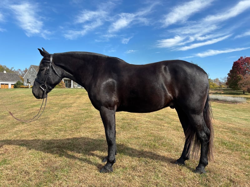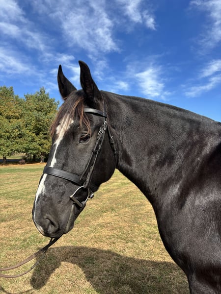 Tall, dark, and handsome, Truman is a medium-built, correct, and striking gelding with impeccable ground manners. He comes when called, stands quietly in cross ties, clips easily, stands for the farrier, and even self-loads — making him as easy to handle on the ground as he is under saddle. A beautiful mover with excellent basic dressage schooling. He has been brought along slowly and carefully hunting in 2nd and 3rd flight for 𝐭𝐰𝐨 𝐬𝐞𝐚𝐬𝐨𝐧𝐬 and is ready, willing, and capable to step up to 1st flight. He has no spook and approaches every jump with confidence. Truman is 𝐮𝐧𝐜𝐨𝐦𝐩𝐥𝐢𝐜𝐚𝐭𝐞𝐝 𝐚𝐧𝐝 𝐬𝐚𝐟𝐞 for all levels of mounts. He is a versatile, all-around horse — perfect for someone looking for a talented hunter, a reliable lesson or show partner, or a confident horse to enjoy on the trails. Don’t miss the chance to make this exceptional gelding yours! Remember you deserve the BEST!