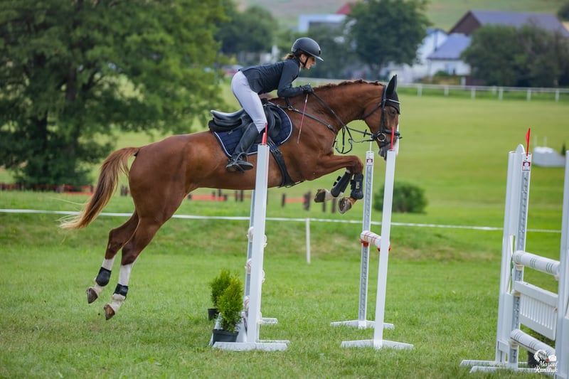 Czech Warmblood Mare Gentelman IV x Scyris xx Competed last year in her first season, achieving 2nd place at the Czech Eventing Final for Young Horses Very nice and easy to ride, soft in hand, with an excellent character X-rays completed Approximately 73% Thoroughbred A great opportunity for a rider looking for a talented young mare with excellent temperament and eventing potential. For more videos or photos please contact me. We are breeders and have multiple horses for sale, ranging from foals to 3* event horses.