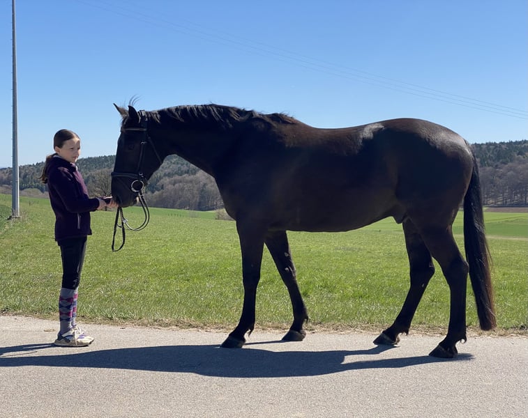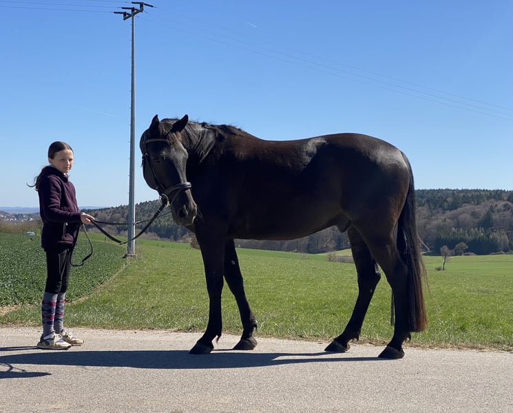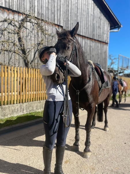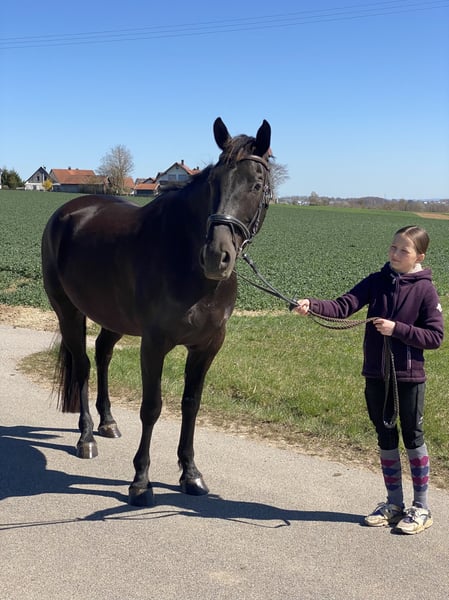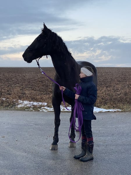 Zum Verkauf steht unser menschenbezogener, gutmütiger und ausgeglichener Tschechischer-Warmblut-Wallach „Rubin“. Rubi ist 8 Jahre alt, 161cm groß und überzeugt durch seinen lieben, aufgeschlossenen Charakter, sowie stattlichen Körperbau. Der Herr ist absolut geländesicher und die wahre Indefinition eines perfekten Familienpferdes! Zudem ist er mit der vielseitigen Arbeit auf dem Reitplatz, der Bodenarbeit, Spaziergängen und dem Freispringen bestens vertraut. Rubin ist gesund, wurde regelmäßig geimpft/ entwurmt und wird sowohl von Jugendlichen, als auch Erwachsenen geritten. Des Weiteren ist er mit allen Pferden verträglich, steht tagsüber im gemischten Herdenverband und nächtlich in der Box, wobei ihm der Offenstall ebenso bekannt ist. Aufgrund seines herzlichen und wissbegierigen Wesens sowie seiner vielfachen Veranlagung ist Rubin wirklich ein vielseitig einsetzbares Herzenspferd zum Spaß haben! Bei Interesse können Sie uns gerne unter der 01776853138 kontaktieren.