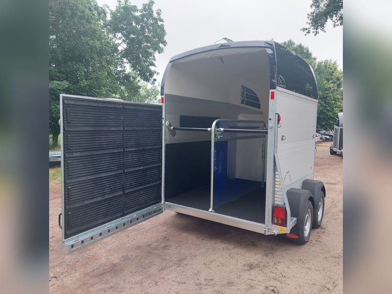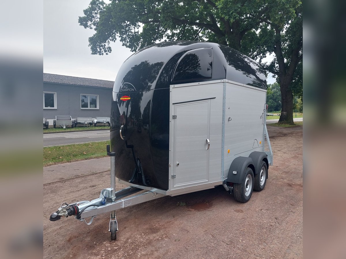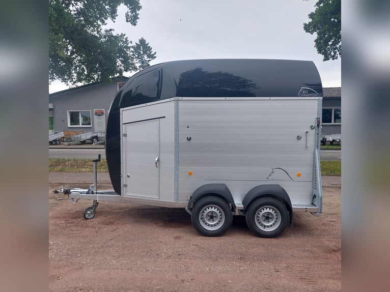 Wir verkaufen einen neuen Böckmann Big Champion SKA WCF in Anthrazit-metallic Der neue Big Champion 22 - Mehr Innenhöhe und -länge! 3560 mm x 1750 mm x 2350 m (LxBxH) - noch mehr Platz vor den Pferden, - noch mehr Kopffreiheit und - noch mehr Nutzraum in der Sattelkiste! - Höhere, verstärkte Seitenwand (jetzt 1700 statt 1500 mm!) für mehr Stabilität und Sicherheit! - Neues Design der klassischen Böckmann Optik! - zul Gesamtgewicht: 2400 kg - Nutzlast: 1367 kg - Tiefergelegtes WCF-Fahrwerk mit Radstoßdämpfer - Böckmann Stahlfelge - Stützrad automatik - Kugelkupplung abschließbar - große Einstiegstür links - Hinterklappe / 1-Flügeltürkombination - Planenlift mit integriertem Netz - große Sattelkammer im Bug aus Polyester mit einer innenliegenden Tür - 2 Sattelhalter drehbar und ausziehbar - 2 Stk. Futtereimer - Multi Safe System (Sicherheitsboxenstangen-System) - Seitenpolsterung - Seitentrittschutz - Bruststangenpolsterung - LED-Deckenleuchte blau und weiß im Pferderaum - 13pol. Stecker - MwSt. ausweisbar weitere neue und gebrauchte Pferdeanhänger auf Lager! Fahrzeugbriefversand zur Anmeldung gegen 5 € Aufschlag im Vorfeld möglich! Besichtigung/ Abholung in 16845 Großderschau nach Absprache unter 033875-909588 jederzeit möglich! Inzahlungnahme und Finanzierung gerne möglich Öffnungszeiten: Montag - Freitag 8.00 - 17.00 Uhr