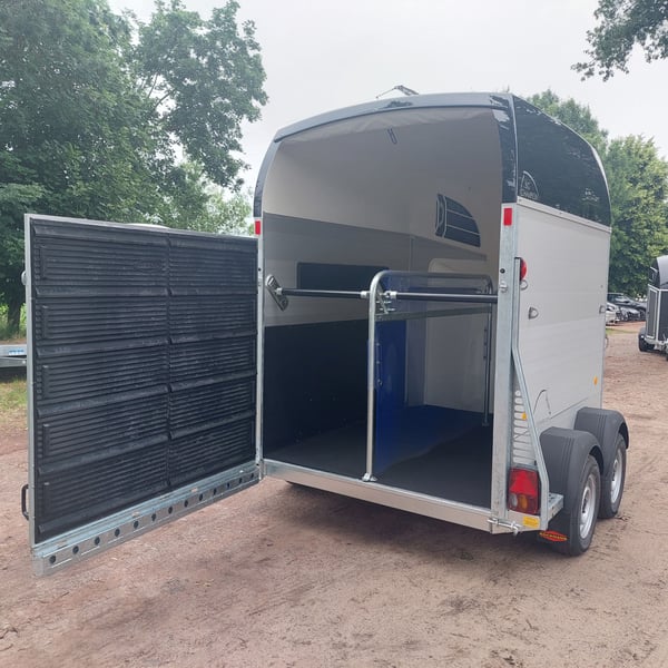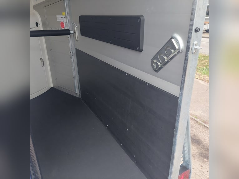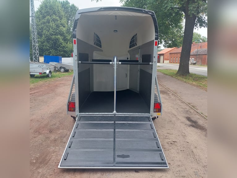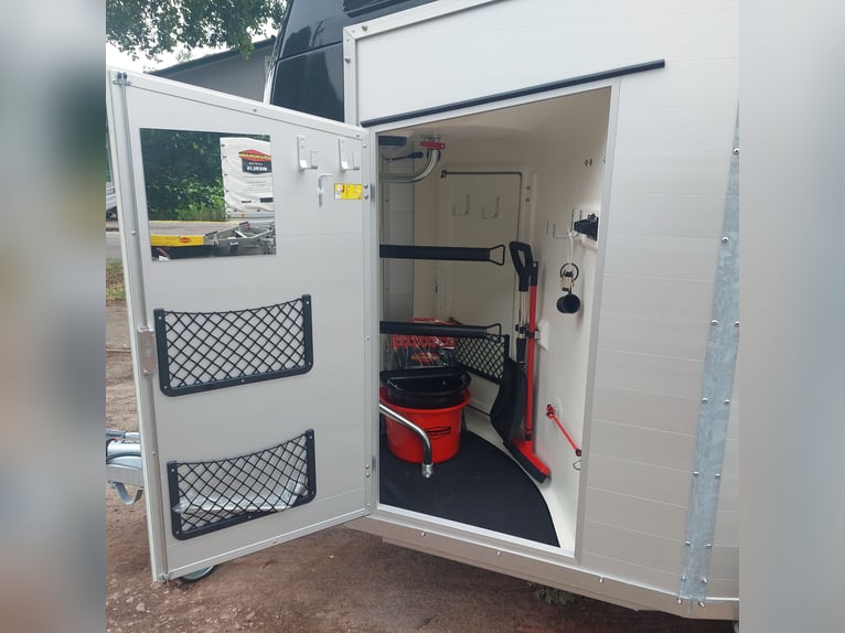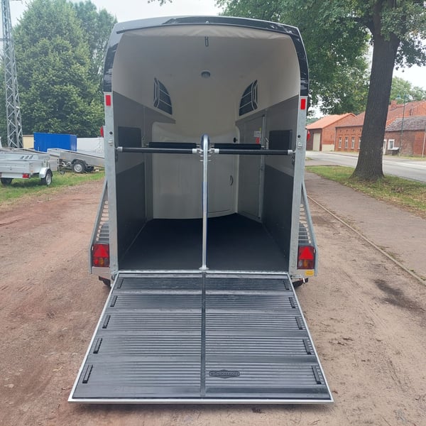 Wij verkopen een nieuwe Böckmann Big Champion SKA WCF in antraciet-metallic De nieuwe Big Champion 22 - Meer binnenhoogte en -lengte! 3560 mm x 1750 mm x 2350 m (LxBxH) - nog meer ruimte voor de paarden, - nog meer stahoogte en - Nog meer bruikbare ruimte in de zadelkast! - Hogere, verstevigde zijwand (nu 1700 i.p.v. 1500 mm!) voor meer stabiliteit en veiligheid! - Nieuw design van de klassieke Böckmann-look! - GVW: 2400 kg - Laadvermogen: 1367 kg - Verlaagd WCF-chassis met wielschokdemper - Böckmann stalen velg - Automatisch neuswiel - Vergrendelbare kogelkoppeling - grote toegangsdeur aan de linkerkant - Achterklep / 1-scharnierende deurcombinatie - Dekzeillift met geïntegreerd net - Grote zadelkamer in de boeg van polyester met een binnendeur - 2 draaibare en uitschuifbare zadelhouders - 2 voeremmers - Multi Safe-systeem (veiligheidskaststangsysteem) - Vulling aan de zijkant - Bescherming tegen zijwaartse trappen - Vulling van de borststang - LED plafondlamp blauw en wit in de paardenkamer - 13-pins Stekker - BTW aftrekbaar Meer nieuwe en gebruikte paardentrailers op voorraad! Voertuigregistratie voor registratie is mogelijk tegen een toeslag van 5 € vooraf! Bezichtiging/afhalen in 16845 Großderschau op afspraak op 033875-909588 op elk moment mogelijk! Inruil en financiering mogelijk Openingsuren: Maandag t/m vrijdag 8.00 - 17.00 uur