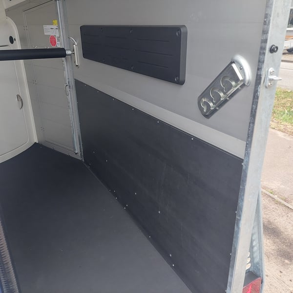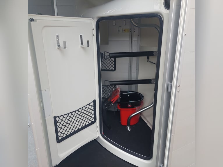 Nous vendons un nouveau Böckmann Big Champion SKA WCF en anthracite métallique Le nouveau Big Champion 22 - Plus de hauteur et de longueur intérieures ! 3560 mm x 1750 mm x 2350 m (LxlxH) - encore plus d'espace devant les chevaux, - encore plus d'espace pour la tête et - encore plus d'espace utile dans la sellerie ! - Paroi latérale plus haute et renforcée (maintenant 1700 au lieu de 1500 mm !) pour plus de stabilité et de sécurité ! - Nouveau design de l'optique classique de Böckmann ! - Poids total autorisé : 2400 kg - Charge utile : 1367 kg - Châssis WCF surbaissé avec amortisseurs de roue - Jante en acier Böckmann - Roue jockey automatique - Attelage à boule verrouillable - grande porte d'accès à gauche - Porte arrière / combinaison de 1 porte battante - élévateur de bâche avec filet intégré - grande sellerie à l'avant en polyester avec une porte intérieure - 2 porte-selles pivotants et extensibles - 2 pcs. Seau à nourriture - Système Multi Safe (système de barres de sécurité pour les boxes) - Rembourrage latéral - Protection latérale contre les coups de pied - Rembourrage de barre de poitrail - Plafonnier LED bleu et blanc dans l'espace équin - Prise 13 pôles - TVA déductible autres vans pour chevaux neufs et d'occasion en stock ! Envoi de la carte grise pour l'immatriculation possible contre un supplément de 5 € à l'avance ! Visite / enlèvement à 16845 Großderschau sur rendez-vous au 033875-909588 possible à tout moment ! Reprise et financement possible Heures d'ouverture : lundi - vendredi 8.00 - 17.00 heures