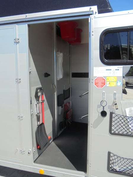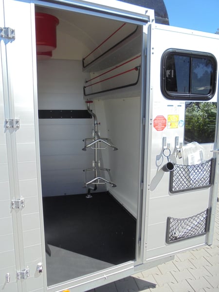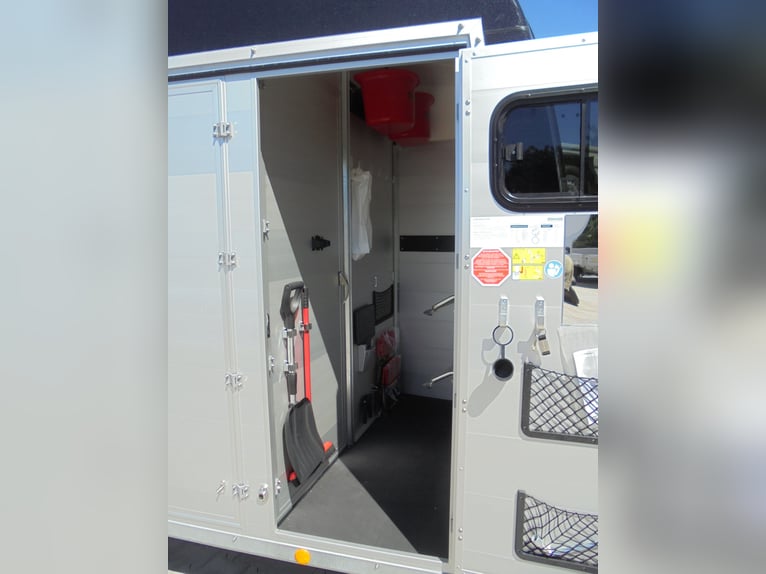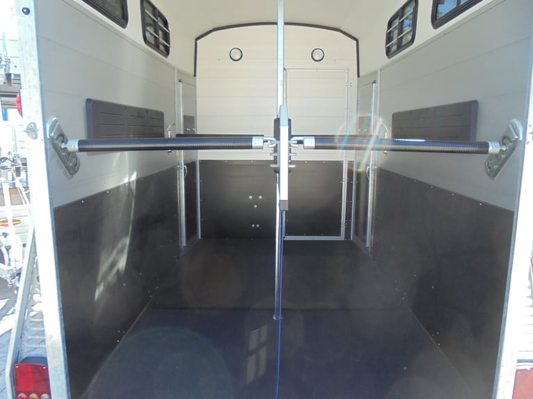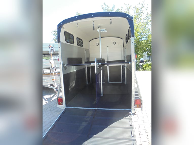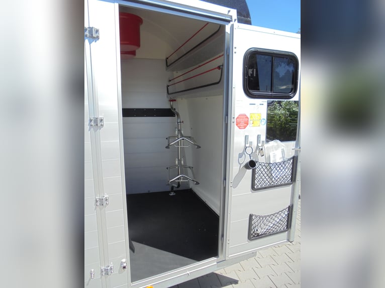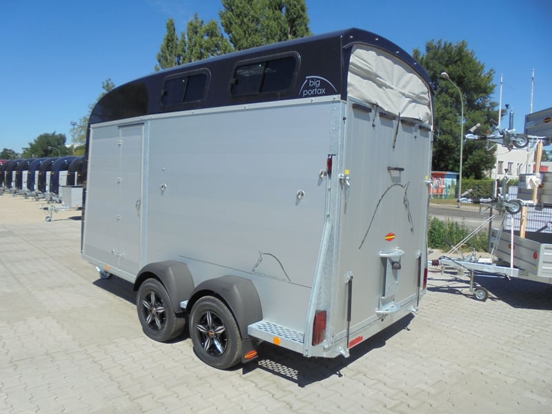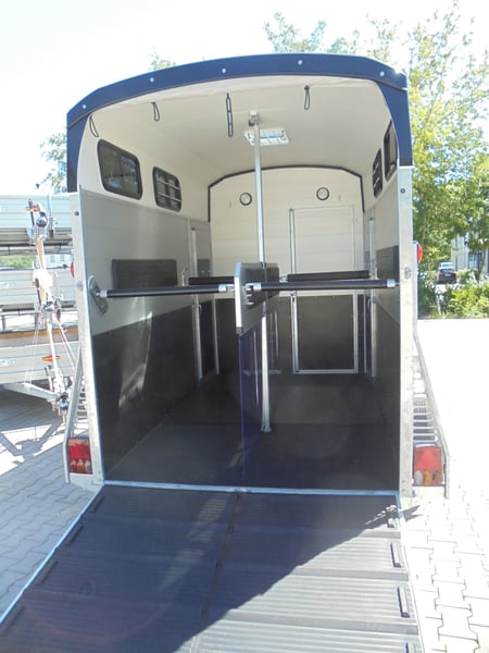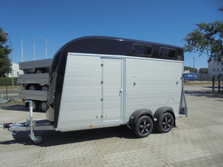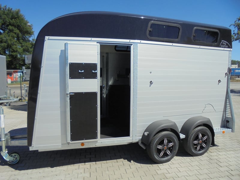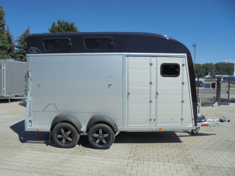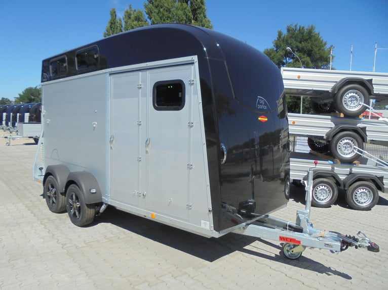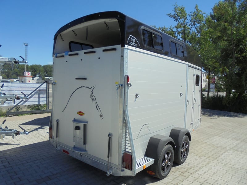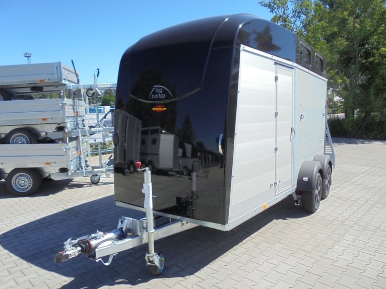 We are selling a new Böckmann BIG Portax horse trailer: - New vehicle - Permissible total weight: 2,700 kg - Unladen weight: 1,330 kg - Payload: 1,370 kg - Internal dimensions: 2.40 m high x 1.85 m wide - Heavy-duty automatic jockey wheel - Lockable ball coupling - Böckmann aluminum rims - Lowered WCF chassis with shock absorber - Böckmann premium aluminum wheels 14" - Original Böckmann full aluminum floor - Entry doors on both sides into the horse compartment - Large walk-in saddle room with storage options - Two rotatable and swiveling saddle racks - 700 mm door in the partition wall (20 mm threshold) opening into the saddle area - Additional padding for box dividers - Movable middle partition (front and rear) with padding - Side wall padding - Foot protection - Wear-resistant mat for front legs - Multi Safe System (security bar system) - Two feed troughs - Lighting system with reverse light and 13-pin connector We also have additional new and used horse trailers in stock! Viewings and pickup in Großderschau (postal code 16845) by arrangement at any time! Vehicle registration documents can be shipped in advance for registration purposes for an additional €5! Feel free to contact us regarding financing options! Opening hours: Monday – Friday 8:00 a.m. – 5:00 p.m.