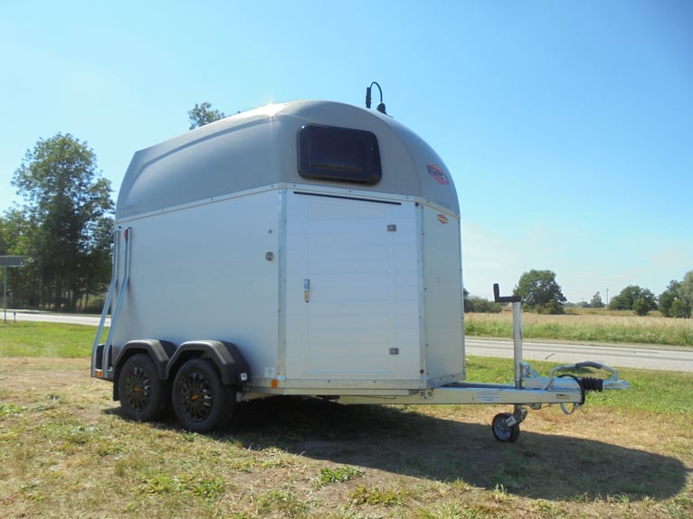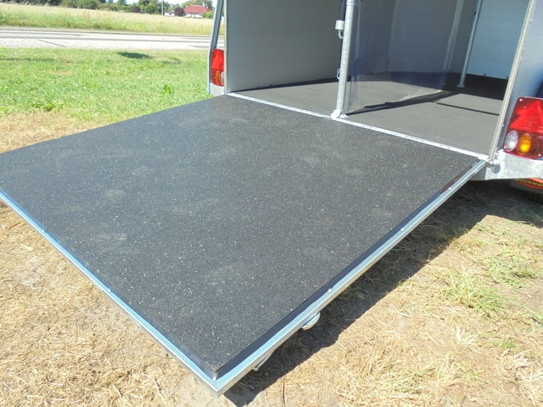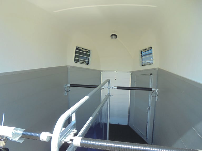Vendiamo un nuovo Böckmann Champion Esprit "silver + black" ad un prezzo speciale in argento - Portata: 2400 kg - Carico utile: 1565 kg - Peso a vuoto: 835 kg - Pianale originale Böckmann in alluminio - Sollevamento del telone - Finestra apribile nel cofano in poliestere - Ruota di supporto automatica - Pavimento in gomma incollato e sigillato - Gomma sulla sponda di carico (senza strisce) - Copricerchi (neri) - Illuminazione interna blu e bianca - Sistema di illuminazione con luce di retromarcia e spina a 13 poli Altri rimorchi per cavalli nuovi e usati in stock! I documenti di circolazione possono essere inviati per l'immatricolazione con un supplemento di 5 euro! Sopralluogo/ritiro in 16845 Großderschau possibile in qualsiasi momento previo accordo al numero 033875-909588! Spedizione del titolo del veicolo per l'immatricolazione possibile in anticipo! Possibilità di permuta e finanziamento. Orari di apertura: Lunedì - Venerdì dalle 8.00 alle 17.00