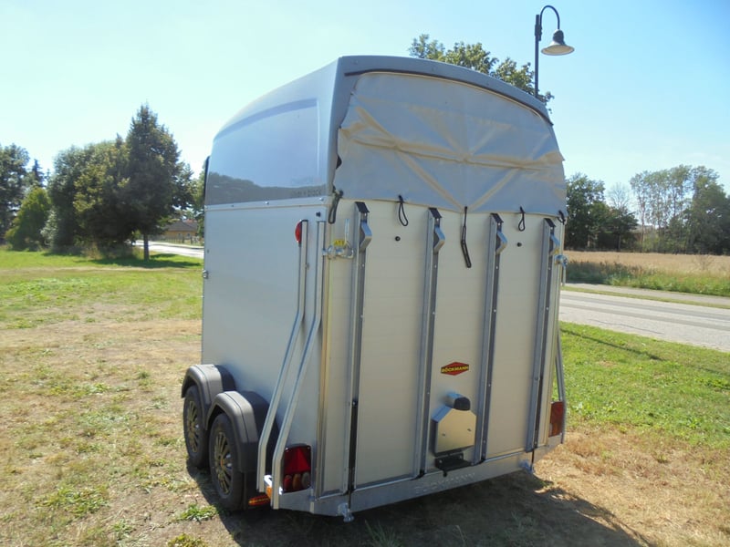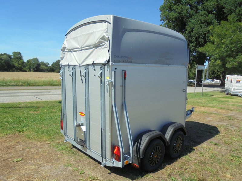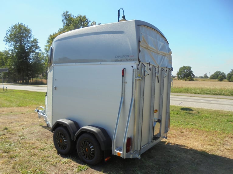 Wir verkaufen einen neuen Böckmann Champion Esprit "silver + black" zum Aktionspreis in Silber - zGg: 2400 kg - Nutzlast: 1565 kg - Leergewicht: 835 kg - Original Böckmann Vollaluminium-Boden - Planenlift - Aufstellfenster in Polyesterhaube - Automatikstützrad - Gummiboden verklebt und versiegelt - Gummi auf Beladeklappe (ohne Trittleisten) - Radzierblenden (schwarz) - Innenbeleuchtung blau und weiß - Lichtanlage mit Rückfahrscheinwerfer und Stecker 13-polig !weitere neue und gebrauchte Pferdeanhänger auf Lager! Fahrzeugbriefversand zur Anmeldung gegen 5 € Aufschlag im Vorfeld möglich! Besichtigung/ Abholung in 16845 Großderschau nach Absprache unter 033875-909588 jederzeit möglich! Fahrzeugbriefversand zur Anmeldung im Vorfeld möglich! Inzahlungnahme und Finanzierung gerne möglich. Öffnungszeiten: Montag - Freitag 8.00 - 17.00 Uhr