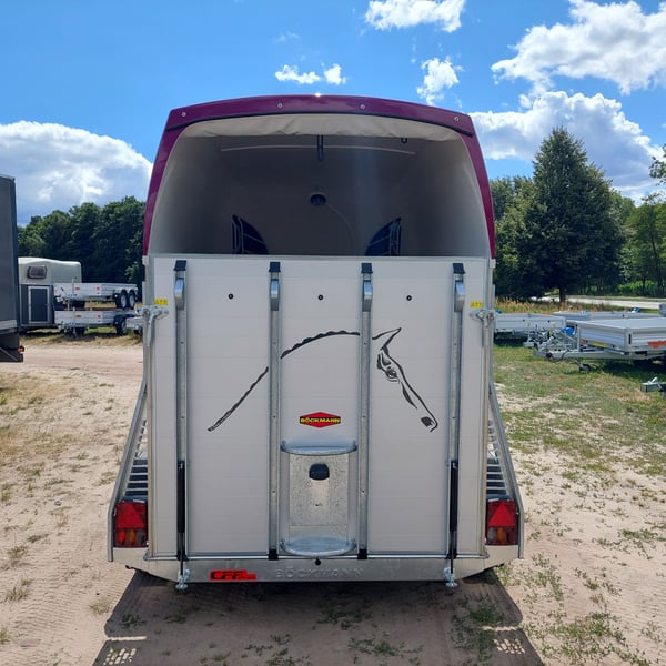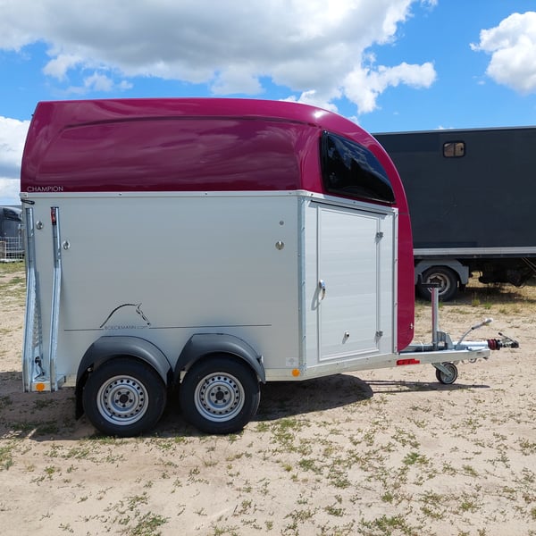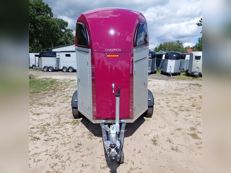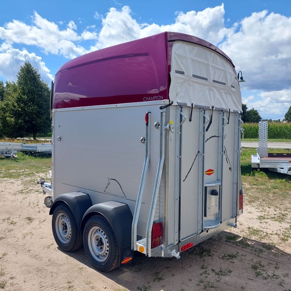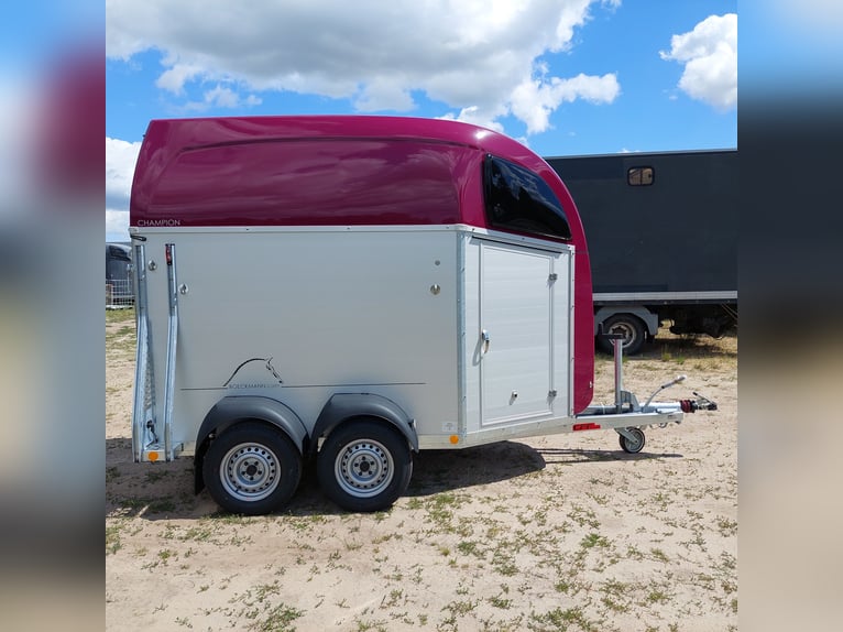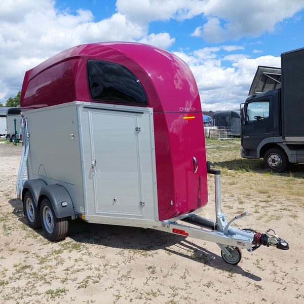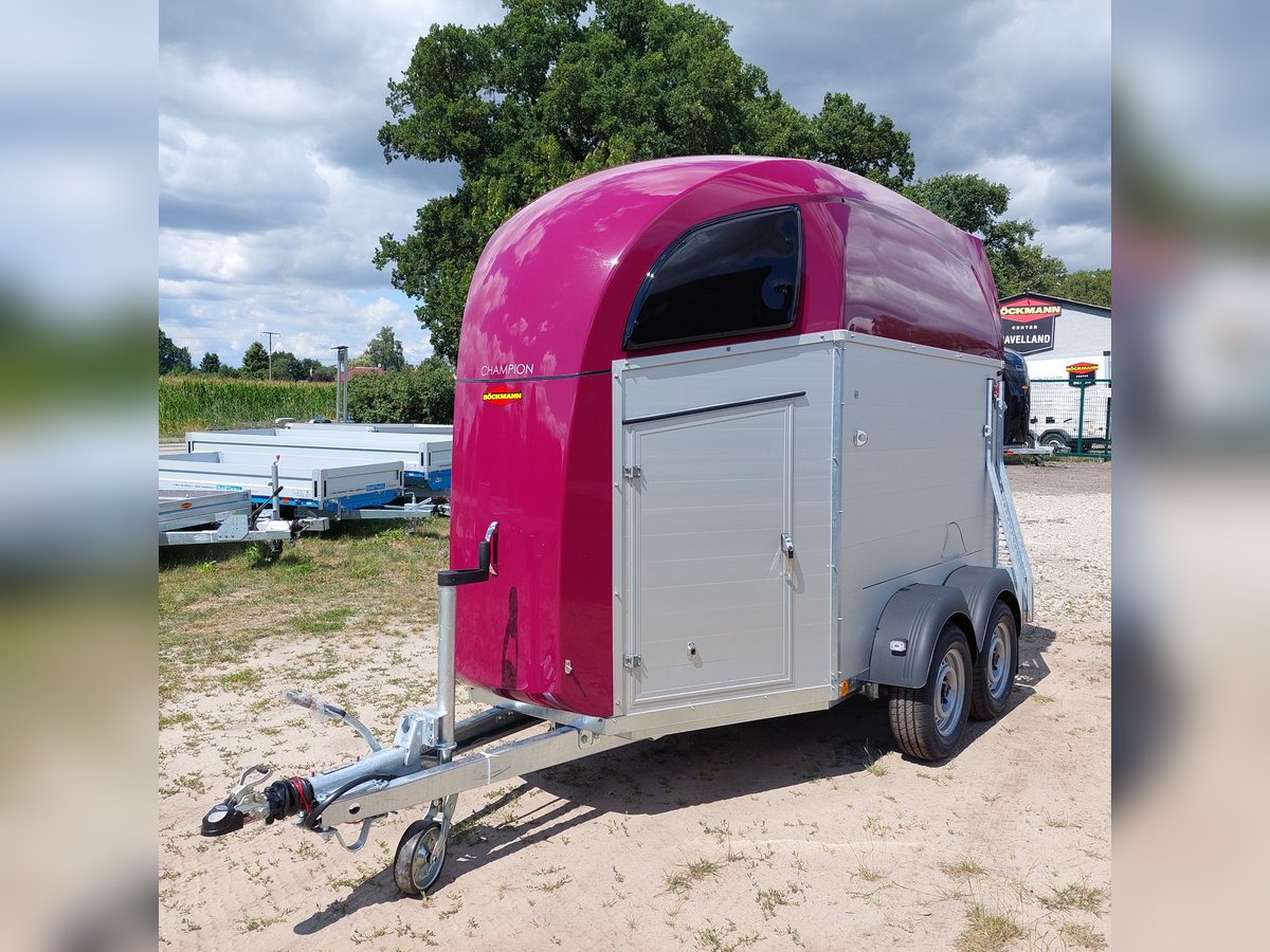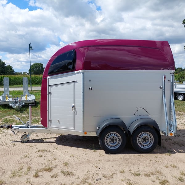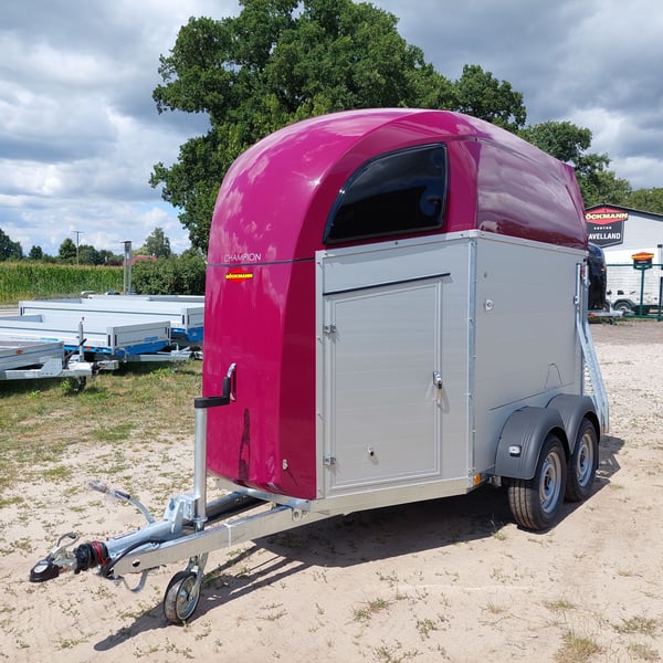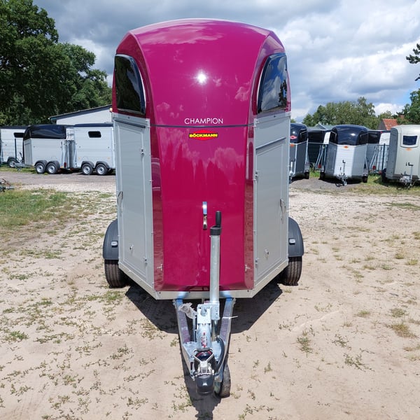 Wir verkaufen einen neuen Böckmann ALU Pferdeanhänger Champion R für 2 Pferde in Sonderfarbe "Frozen Berry" - zul. Gesamtgewicht: 2400 kg - Nutzlast: 1497 kg - Leergewicht: 903 kg - CFF-Plus Fahrgestell inkl. Radstoßdämpfer - Automatik-Stützrad - Kugelkupplung abschließbar - Planenlift mit integriertem Netz - Sattelkiste m. ausziehbarem Sattelhalter u. Besen/Schaufel/Netz/Spiegel - Original Böckmann Vollaluminium-Boden - Multi Safe System (Sicherheitsboxenstangen-System) - Innenbeleuchtung blau / weiß - Gummi auf Beladeklappe (integrierte Trittleisten) und Seitenstop - Seitenpolsterung - Seitentrittschutz - Bruststangenpolsterung - Lichtanlage mit Rückfahrscheinwerfer und Stecker 13-polig - Preis inkl. MwSt. weitere neue und gebrauchte Pferdeanhänger auf Lager! Fahrzeugbriefversand zur Anmeldung gegen 5 € Aufschlag im Vorfeld möglich! Lieferung nach Absprache, Inzahlungnahme und Finanzierung gerne möglich Besichtigung/ Abholung in 16845 Großderschau nach Absprache unter 033875-909588 jederzeit möglich! Öffnungszeiten: Montag - Freitag 8.00 - 17.00 Uhr