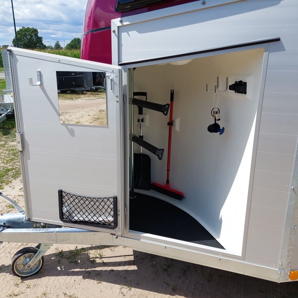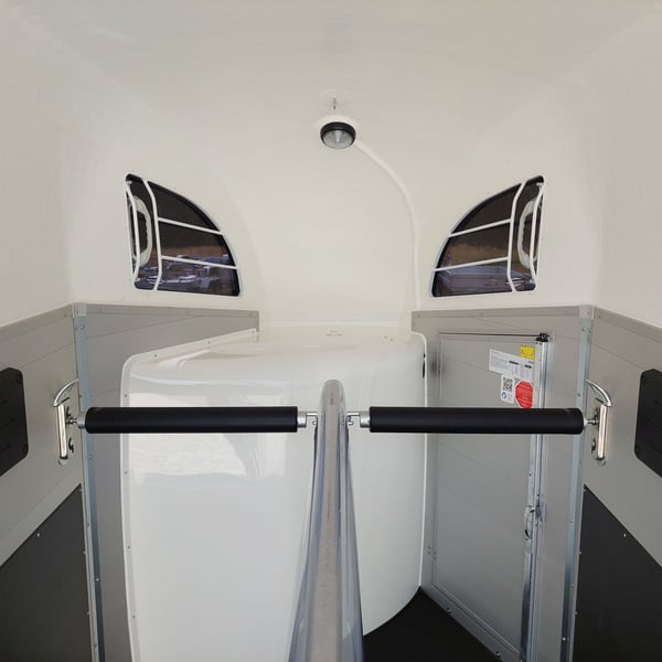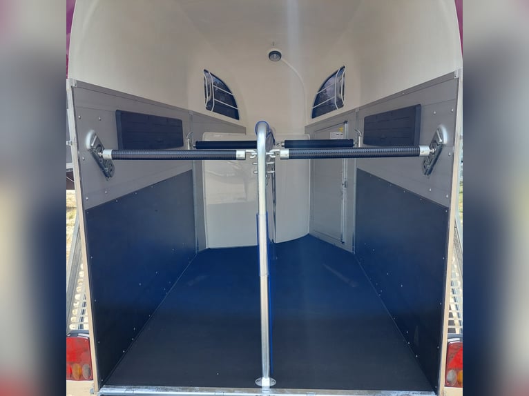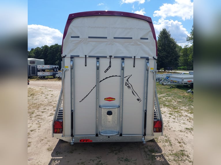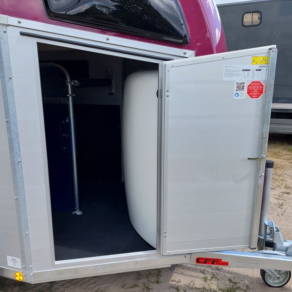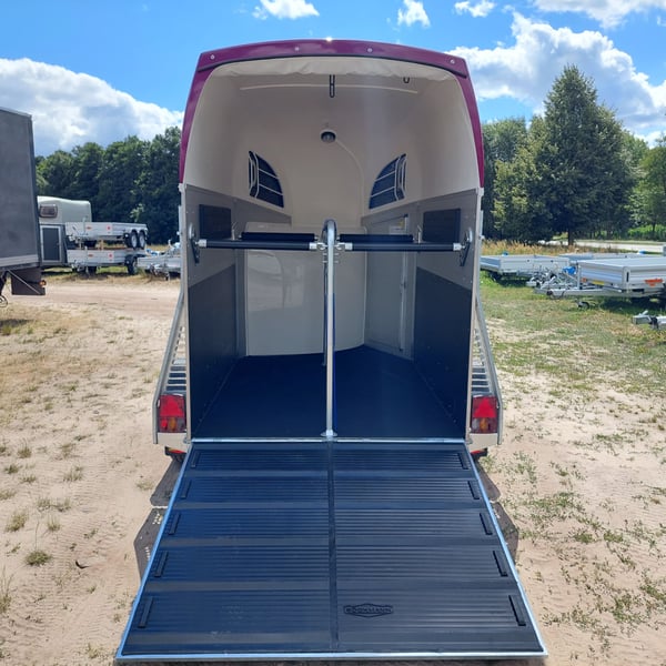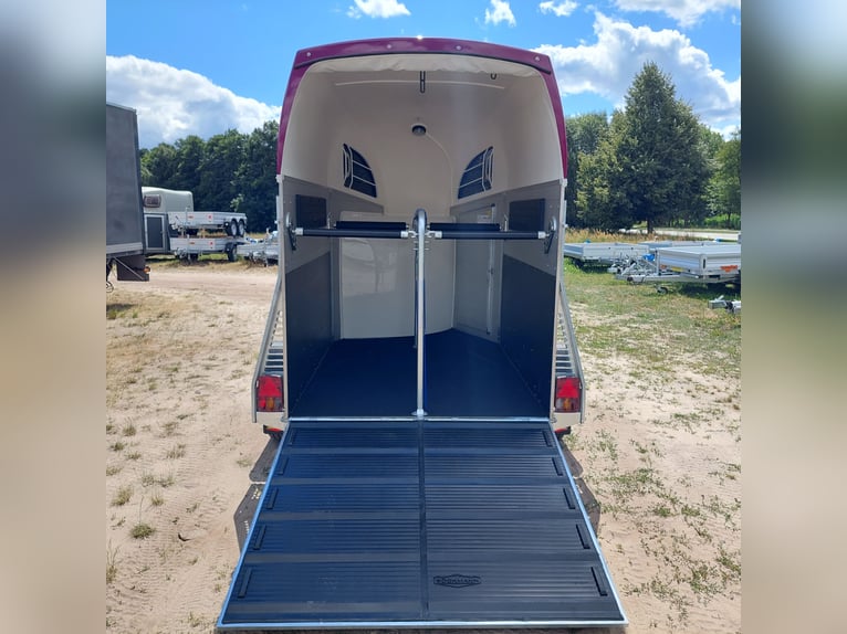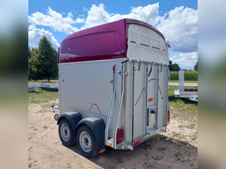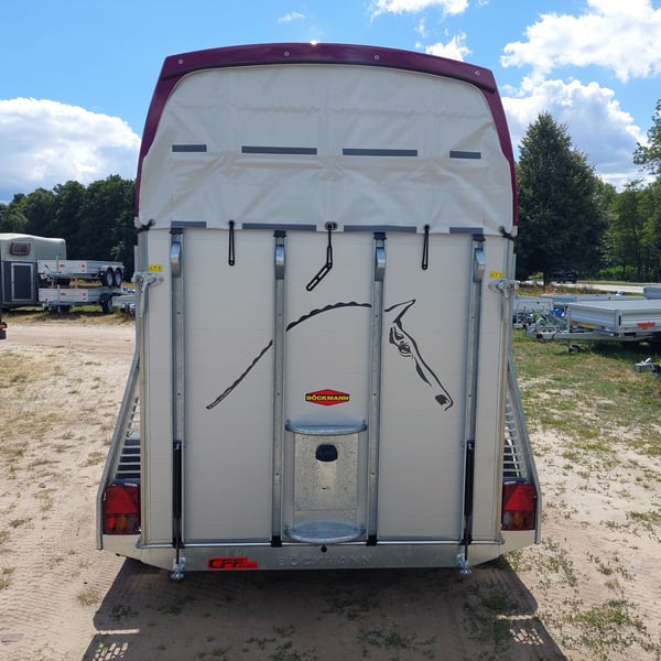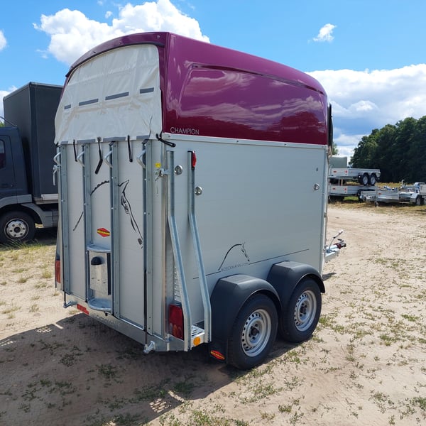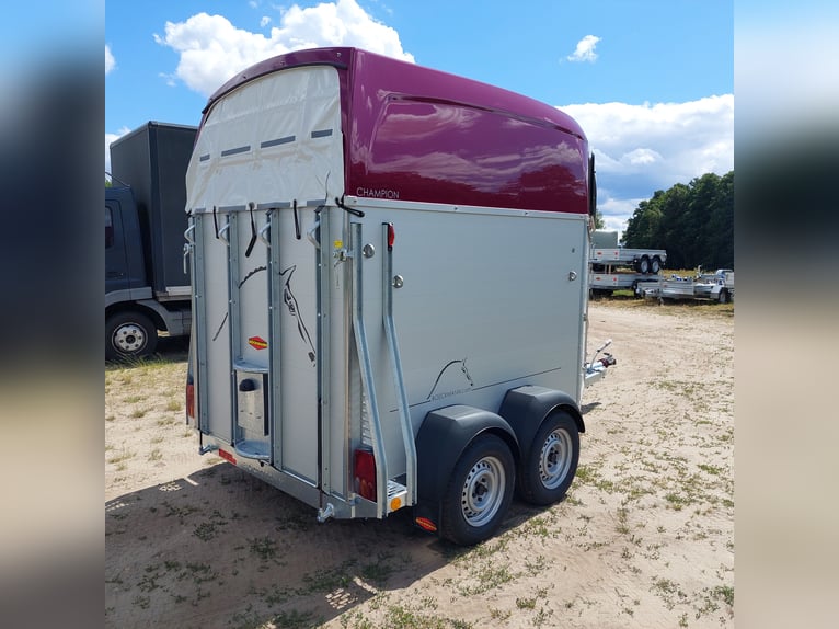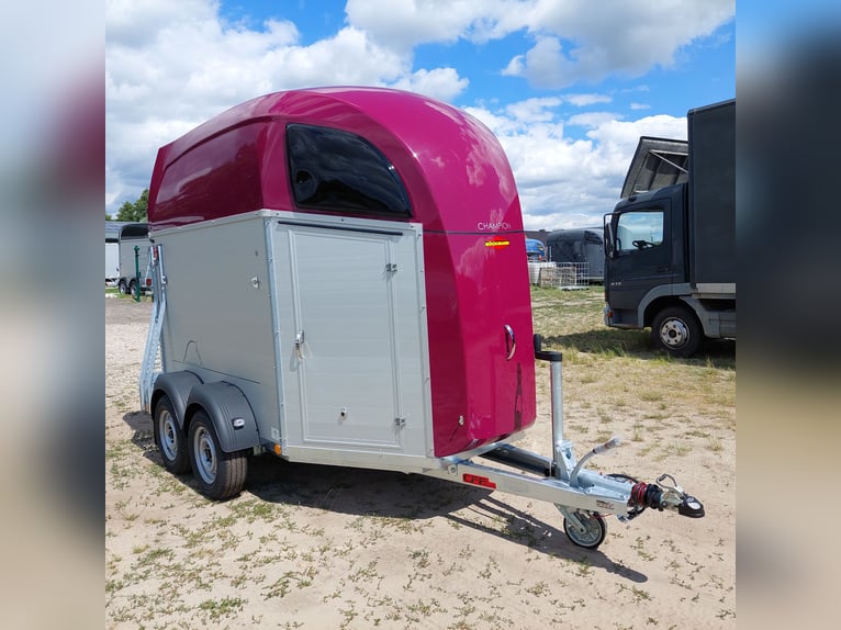 Wir verkaufen einen neuen Böckmann ALU Pferdeanhänger Champion R für 2 Pferde in Sonderfarbe "Frozen Berry" - zul. Gesamtgewicht: 2400 kg - Nutzlast: 1497 kg - Leergewicht: 903 kg - CFF-Plus Fahrgestell inkl. Radstoßdämpfer - Automatik-Stützrad - Kugelkupplung abschließbar - Planenlift mit integriertem Netz - Sattelkiste m. ausziehbarem Sattelhalter u. Besen/Schaufel/Netz/Spiegel - Original Böckmann Vollaluminium-Boden - Multi Safe System (Sicherheitsboxenstangen-System) - Innenbeleuchtung blau / weiß - Gummi auf Beladeklappe (integrierte Trittleisten) und Seitenstop - Seitenpolsterung - Seitentrittschutz - Bruststangenpolsterung - Lichtanlage mit Rückfahrscheinwerfer und Stecker 13-polig - Preis inkl. MwSt. weitere neue und gebrauchte Pferdeanhänger auf Lager! Fahrzeugbriefversand zur Anmeldung gegen 5 € Aufschlag im Vorfeld möglich! Lieferung nach Absprache, Inzahlungnahme und Finanzierung gerne möglich Besichtigung/ Abholung in 16845 Großderschau nach Absprache unter 033875-909588 jederzeit möglich! Öffnungszeiten: Montag - Freitag 8.00 - 17.00 Uhr
