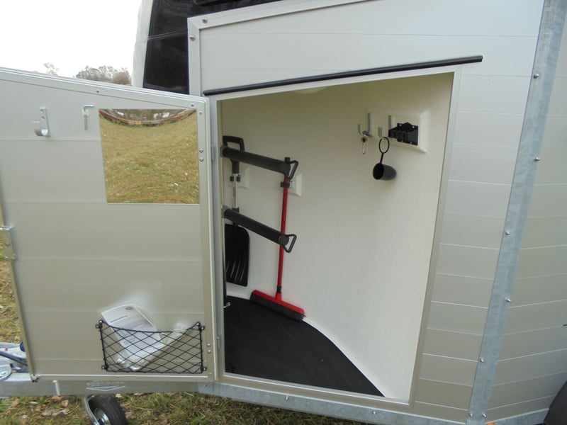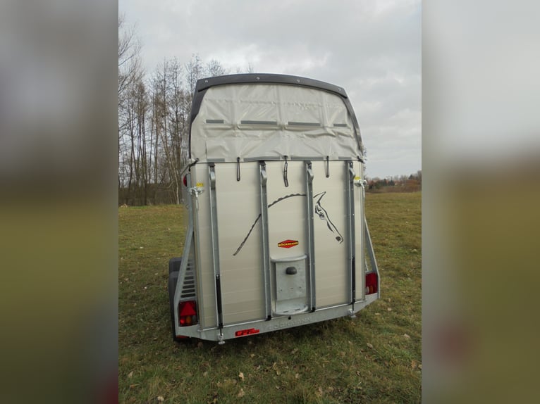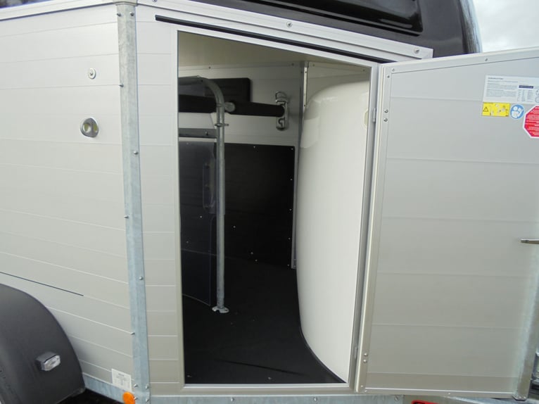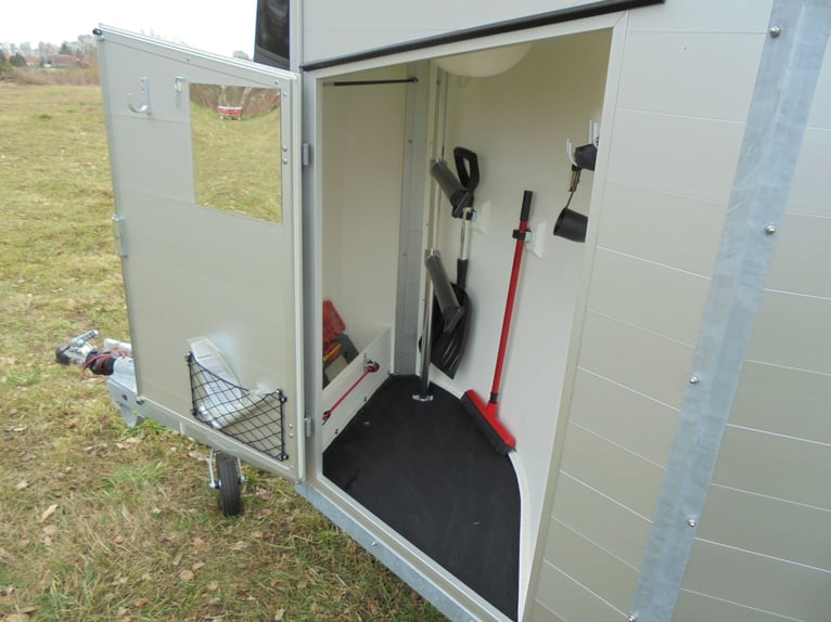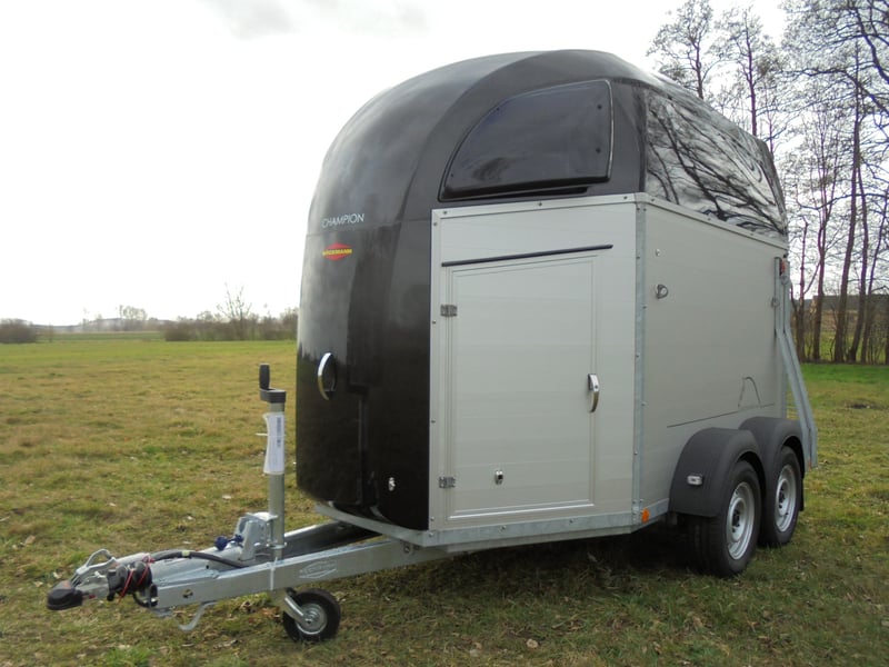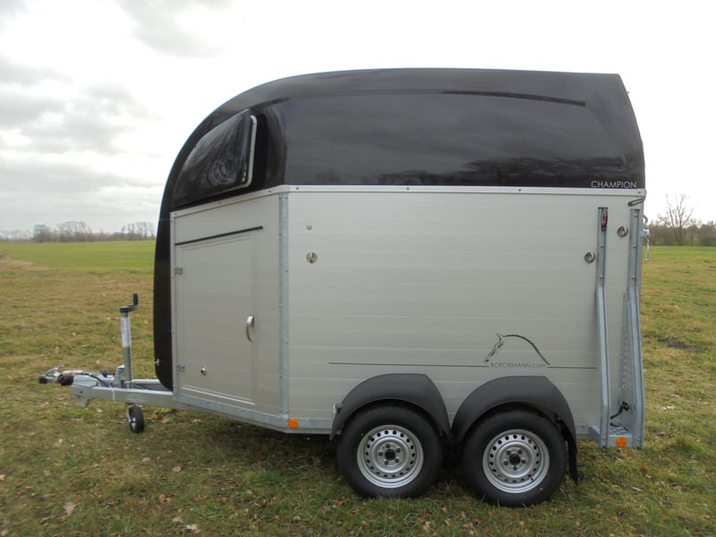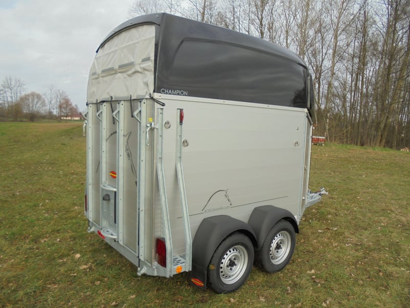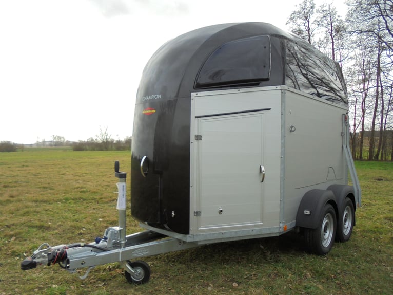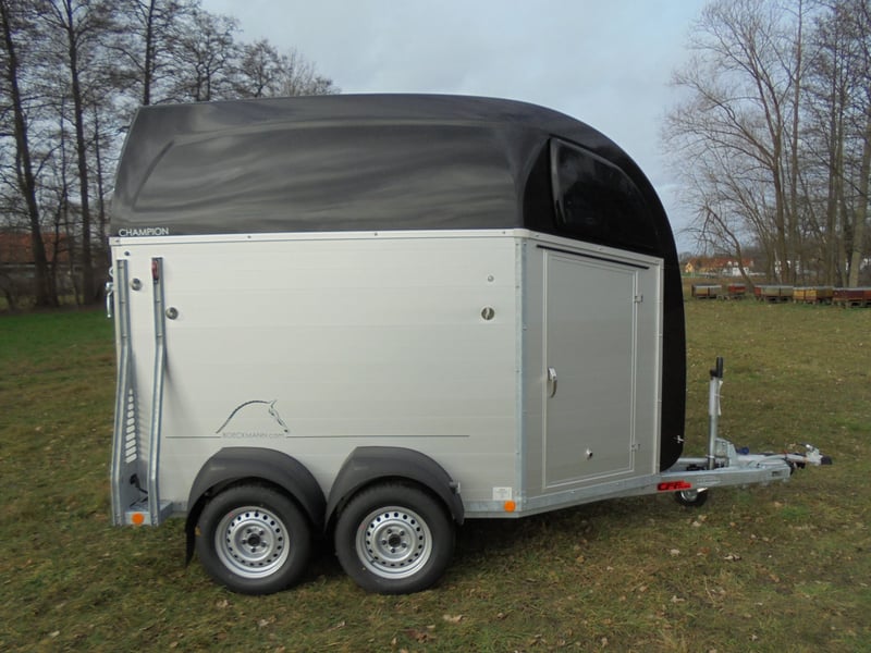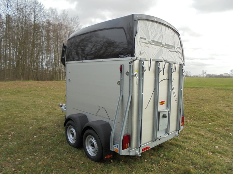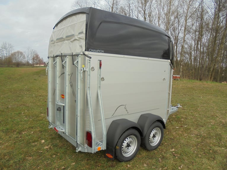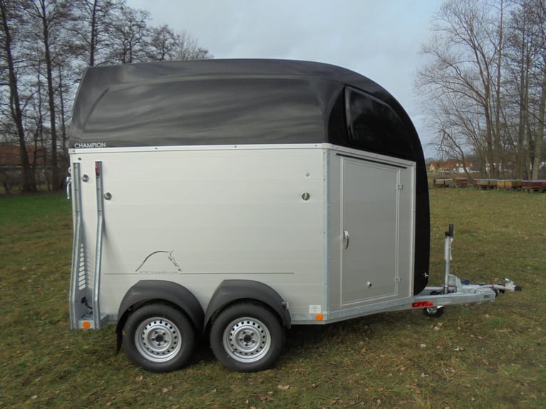 Wir verkaufen einen neuen Böckmann ALU Pferdeanhänger Champion R für 2 Pferde / Haube und Bug in anthrazit-metallic mit Dachlüfter... - zul. Gesamtgewicht: 2400 kg - Nutzlast: 1497 kg - Leergewicht: 903 kg - CFF-Plus Fahrgestell inkl. Radstoßdämpfer - Zusätzlicher Dachlüfter in der Polyesterhaube - Automatik-Stützrad - Kugelkupplung abschließbar - Planenlift mit integriertem Netz - Sattelkiste m.ausziehbarem Sattelhalter u. Besen/Schaufel/Netz/Spiegel - Original Böckmann Vollaluminium-Boden - Multi Safe System (Sicherheitsboxenstangen-System) - Innenbeleuchtung blau / weiß - Gummi auf Beladeklappe (integrierte Trittleisten) und Seitenstopp - Seitenpolsterung - Seitentrittschutz - Bruststangenpolsterung - Lichtanlage mit Rückfahrscheinwerfer und Stecker 13-polig - Preis inkl. MwSt. weitere neue und gebrauchte Pferdeanhänger auf Lager! Fahrzeugbriefversand zur Anmeldung gegen 5 € Aufschlag im Vorfeld möglich! Lieferung nach Absprache, Inzahlungnahme und Finanzierung gerne möglich Besichtigung/ Abholung in 16845 Großderschau nach Absprache unter 033875-909588 jederzeit möglich! Öffnungszeiten: Montag - Freitag 8.00 - 17.00 Uhr