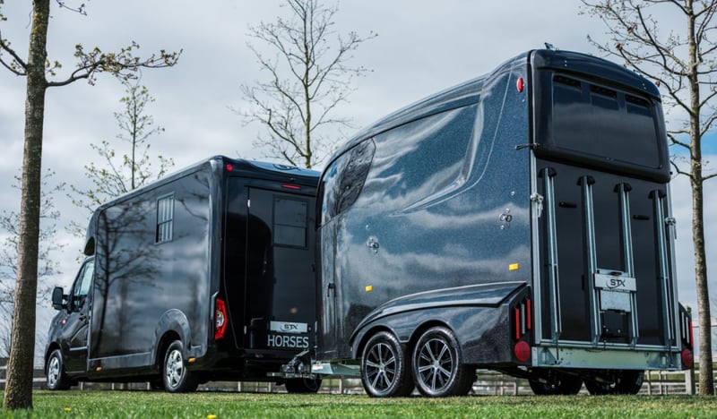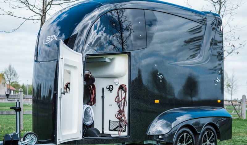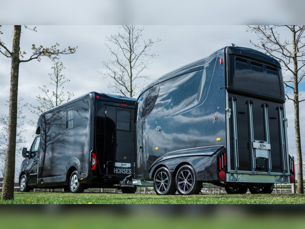 Marque: STX Poids: 2.5T Chevaux: 2 Dimension: 2.4 x 4.9 x 2.4 m Espace Cheval Revêtement de sol en caoutchouc Fenêtre de toit Rampe arrière avec caoutchouc à haute adhérence Protection contre les coups de pied latéraux Rembourrage latéral gauche et droit Barres de maintien rembourrées avant et arrière Sellerie espace de rangement 2 mangeoires Equipement Amortisseurs montés Éclairage intérieur Options Lettrage extérieur Peinture - Toutes couleurs disponibles Brand: STX Weight: 2,5T Horses: 2 Dimension: 2.4 x 4.9 x 2.4 m Horse Area Rubber flooring Openable side windows Big front window Rear ramp with high-grip rubber Side kick protection Side padding left and right Split and padded breast and breeching bars Saddle cupboard storage area 2 feeding troughs Equipment Shock absorbers mounted Interior lighting Options Outside stickering Painting - All colors available Brand: STX Weight: 2.5T Horses: 2 Dimensions: 2.4 x 4.9 x 2.4 m Horse section Rubber floor Skylights Ramp at the back with high-grip rubber Protection on the sidewalls Covered walls left and right Adjustable mounting bars Saddle locker storage space 2 feeders Accommodation Mounted shock protectors Light on the inside Options Stickers on the outside Painting - all colors available