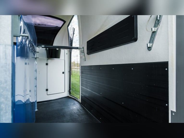 Marque: STX Poids: 2,5T Chevaux: 2 Dimension: 2,4 x 4,9 x 2,4 m Espace Cheval Revêtement de sol en caoutchouc Fenêtre de toit Rampe arrière avec caoutchouc à haute adhérence Protection contre les coups de pied latéraux Rembourrage latéral gauche et droit Barres de maintien rembourrées avant et arrière Sellerie + espace de rangement 2 mangeoires Equipement Amortisseurs montés Éclairage intérieur Options Lettrage extérieur Peinture - Toutes couleurs disponibles Brand: STX Weight: 2,5T Horses: 2 Dimension: 2.4 x 4.9 x 2.4 m Horse Area Rubber flooring Openable side windows Big front window Rear ramp with high-grip rubber Side kick protection Side padding left and right Split and padded breast and breeching bars Saddle cupboard + storage area 2 feeding troughs Equipment Shock absorbers mounted Interior lighting Options Outside stickering Painting - All colors available Merk: STX Gewicht: 2,5T Paarden: 2 Afmetingen: 2.4 x 4.9 x 2.4 m Paardengedeelte Rubberen vloer Dakramen Ramp aan achterkant met high-grip rubber Bescherming aan de zijwanden Beklede wanden links en rechts Verstelbare bevestigingsbarren Zadelkast + opslagruimte 2 voederbakken Accomodatie Gemonteerde schokbeschermers Licht aan de binnenkant Opties Bestickering aan de buitenkant Schilderen - alle kleuren beschikbaar