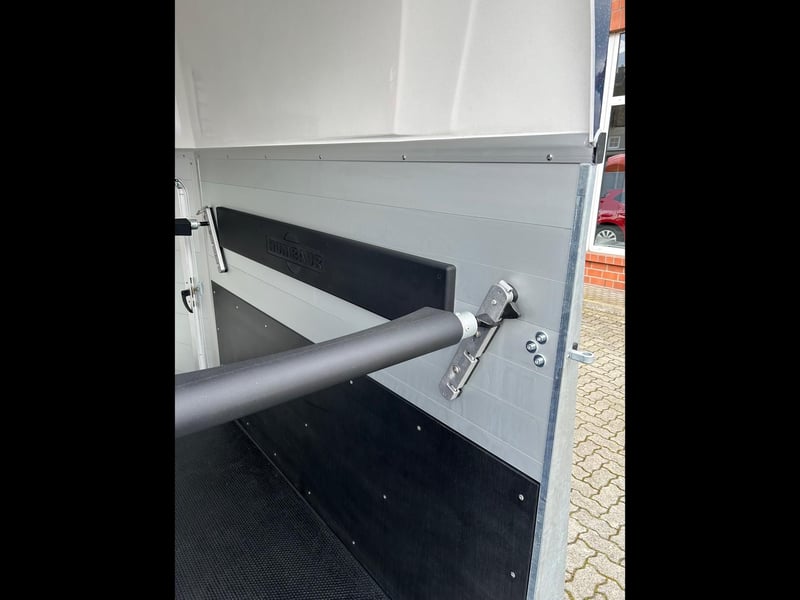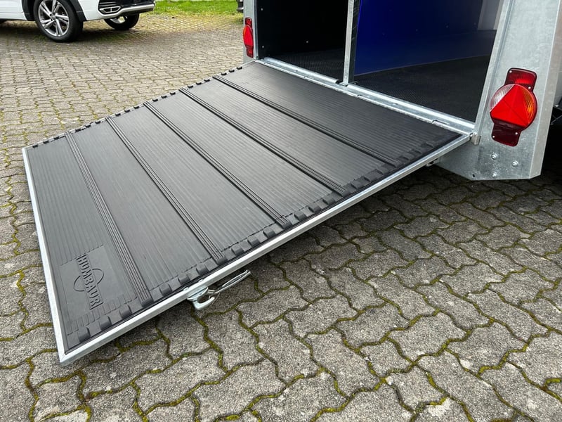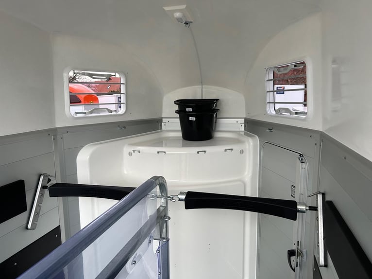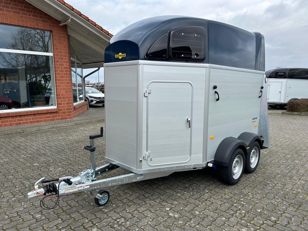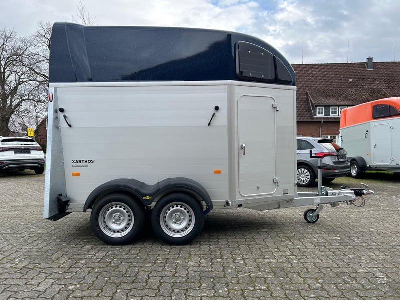Humbaur Xanthos 2400 Pferdeanhänger PKW Anhänger Alter: Neu (Produktionsjahr: 2025) 2 Jahre Hauptuntersuchung ab dem Tag der Erstzulassung Inkl. Zulassungspapiere (Kfz-Brief / Zulassungsbescheinigung Teil 2 und COC) Verfügbar ab: Ca. 6 Wochen nach Bestelleingang (unverbindlich) Finanzierung über unsere Partnerbanken möglich! Technische Daten Zulässiges Gesamtgewicht: 2.400kg Leergewicht: ca. 830kg Nutzlast: ca. 1.570kg Achsenanzahl: 2 Laderaumlänge: 3.157mm Laderaumbreite: 1.714mm Laderaumhöhe: 2.364mm Bremsenart: Gebremst, Auflaufbremse Fahrgestell: Tieflader (Räder neben Aufbau), Gummifederachsen Elektrik: 12V, 13 poliger Stecker Reifengröße: 195/65 R15 Sonderausstattung Seitenpolsterung links und rechts Sattelkammer mit ausziehbarem Sattelhalter mit Sattel-, Steigbügel-, und Trensenhalter, Futtertrögen, Spiegel, Staunetz Serienausstattung EquiDrive® Fahrwerk inkl. Radstoßdämpfer (100 km/h-Zulassung) Alu-BiComp-Boden 21mm (kein Holz - unverrottbar) Gummiboden 8mm stark Seitentrittschutz Aufbau aus doppelwandigen, eloxierten Aluminiumprofilen Heckabstützung mit Beleuchtung Einstiegstür mit 3-Punkt-Verriegelung Auflaufklappe mit Trittleistengummi Geteilte und höhenverstellbare Brust- und Heckstangen mit EquiGuard® Panikentriegelung EquiLock® verriegelbare Trennwand Getönte Ausstellfenster in Polyhaube Polyhaube in Dark Blue Metallic Innenbeleuchtung Heunetzring Windschott Automatisches Stützrad Rahmen verzinkt V-Deichsel AL-KO oder Knott Achsen und Bremsanlage Zubehör (aufpreispflichtig) Alufelgen Silver / Black Sattelablagestange für 2 Sättel (außen) Schwenkbare Sattelablage für 1 Sattel (außen) Dachfenster Fohlengitter Hecktür dreh- und schwenkbar Durchgehende Boxenstange zum Fohlentransport Trittschutzgummi für Sattelkammer Seitenpolsterung links und rechts Kopftrennwand für Mitteltrennwand Trennwand mit Holzplatte Abschließbare Sattelkammer mit Sattel- und Trensenhaltern, Futtertrögen, Spiegel und Staunetz Sattelkammer Western mit Sattel-, Steigbügel- und Trensenhalter, Futtertröge, Spiegel, Staunetz Sattelkammer mit ausziehbarem Sattelhalter mit Sattel-, Steigbügel-, und Trensenhalter, Futtertrögen, Spiegel, Staunetz Planenrollo PVC anstatt Windschott Polyhaube in Farbe GFK-Dachheckklappe in Farbe Verschleißmatte vorne Verschleißmatte hinten Abdichtung Heckklappe gemäß EC Nr. 1/2005 Konturmarkierung Pferdeanhänger umlaufend auf Heckklappe Anhängerschloss Reserverad 195/65 R15 inkl. Reserveradhalter Fahrzeuganlieferung deutschlandweit Zulassung deutschlandweit Überführungskennzeichen (5 Tage gültig) Hinweis Gewichtsangaben können je nach Ausstattung abweichen; Irrtümer, Zwischenverkauf und Änderungen vorbehalten!