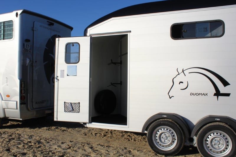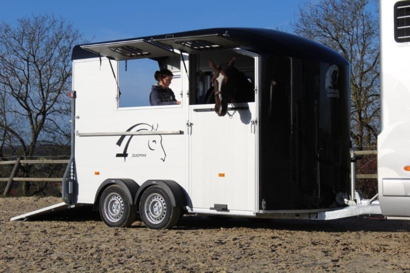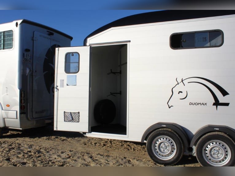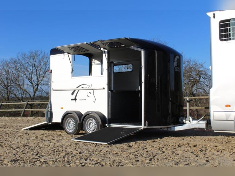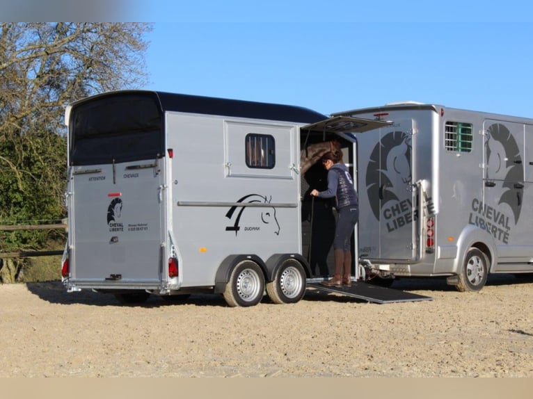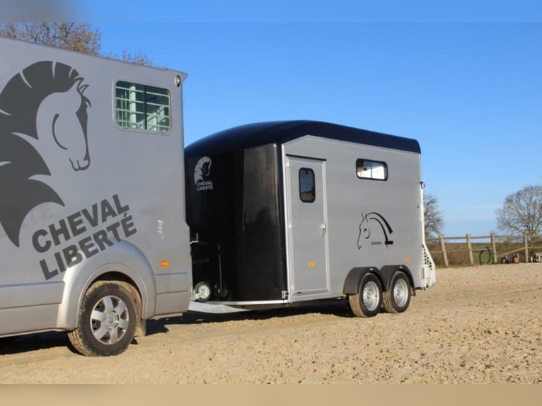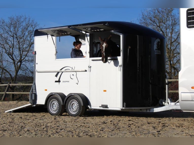 Category Animal/Horse Transport, New Vehicle Year of Manufacture 2021 Permissible Total Weight 2,600 kg Axles 2 Payload 1,640 kg Cargo Space Length 3,780 mm Cargo Space Width 1,810 mm Equipment Loading Ramp Vehicle Description The new sensation on the market. We offer for sale a Cheval Liberté Duomax. Please inquire about the delivery time of the horse trailer. Standard Equipment: - Pullman 2 chassis - Confirmation of speed 100 - Aerodynamic polyester construction - Available poly colors: Black, Light Grey, Dark Grey, Red - Aluminum floor - Anodized aluminum walls - Large cargo space - Aluminum partition wall with head partition lockable with leather strap - Side flap with large sliding window - Sliding window on the left side - Front exit with upper flap and sliding window - Huge saddle room with full equipment (2 saddle holders, bridle holder, document net, mirror, lighting) - Ramp door with net roller at the top - Tie bar on the right side - Spare wheel in the saddle room - Bonded rubber bellows, 8mm - Side cushions at the front - Step protection plates mounted on both sides - Adjustable continuous box bar at the back - Interior light with switch - Automatic support wheel - 14-inch tires on steel rims Options: - Aluminum rims +790,-€ - 2nd tie bar on the side +390,- - Box lock +35,- - Drawbar protection cover +20,- Delivery available for an additional charge. Financing and trade-in possible. Other horse trailers available from 4,890,-€. Delivery available for an additional charge. Errors, input mistakes, and prior sale reserved.