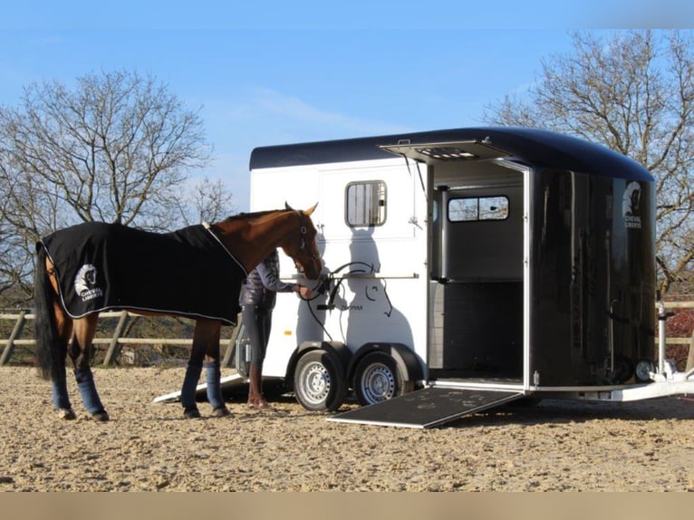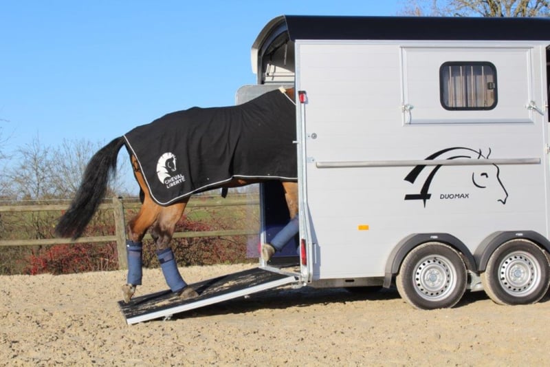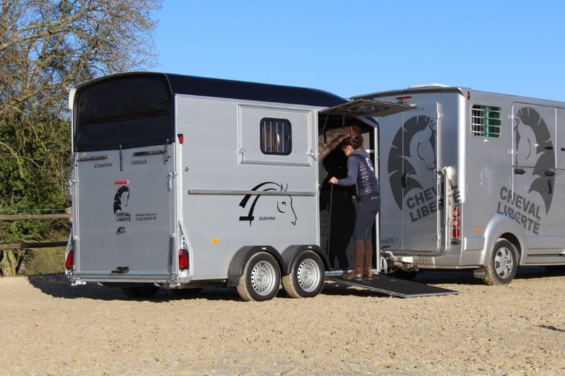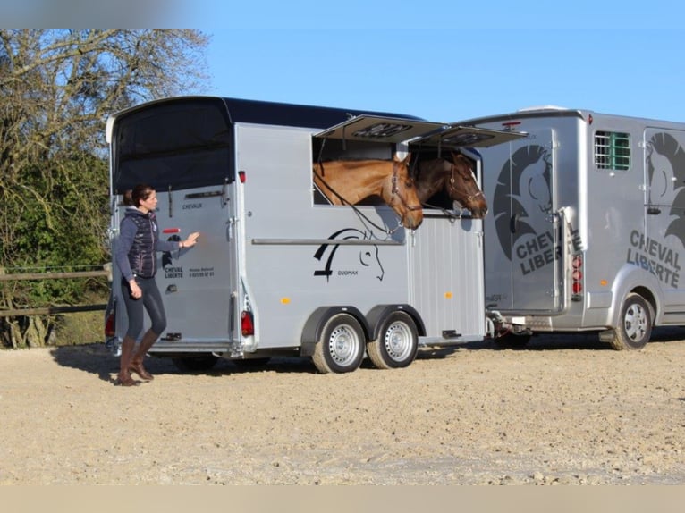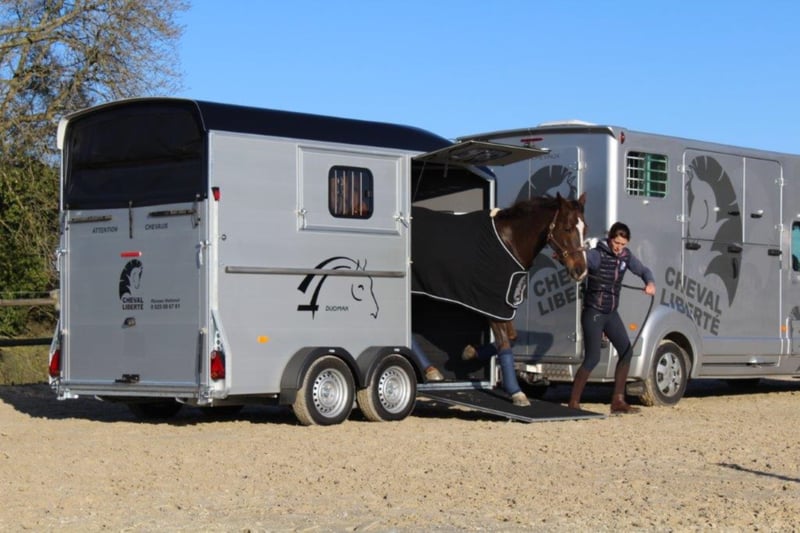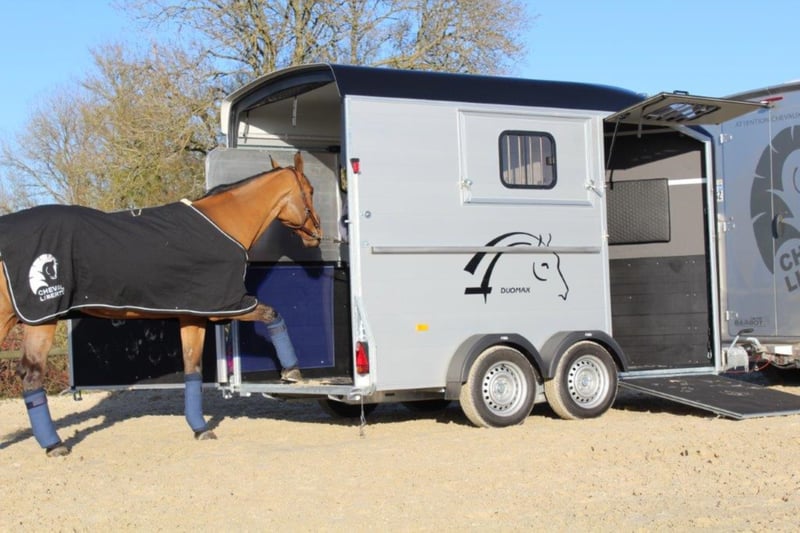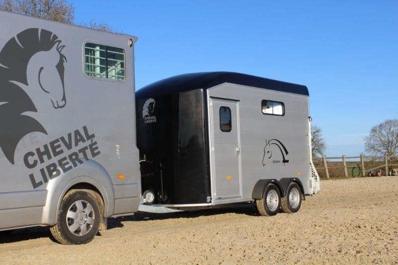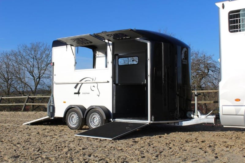 Category Animal/Horse Transport, New Vehicle Year of Manufacture 2021 Permissible Total Weight 2,600 kg Axles 2 Payload 1,640 kg Cargo Space Length 3,780 mm Cargo Space Width 1,810 mm Equipment Loading Ramp Vehicle Description The new sensation on the market. We offer for sale a Cheval Liberté Duomax. Please inquire about the delivery time of the horse trailer. Standard Equipment: - Pullman 2 chassis - Confirmation of speed 100 - Aerodynamic polyester construction - Available poly colors: Black, Light Grey, Dark Grey, Red - Aluminum floor - Anodized aluminum walls - Large cargo space - Aluminum partition wall with head partition lockable with leather strap - Side flap with large sliding window - Sliding window on the left side - Front exit with upper flap and sliding window - Huge saddle room with full equipment (2 saddle holders, bridle holder, document net, mirror, lighting) - Ramp door with net roller at the top - Tie bar on the right side - Spare wheel in the saddle room - Bonded rubber bellows, 8mm - Side cushions at the front - Step protection plates mounted on both sides - Adjustable continuous box bar at the back - Interior light with switch - Automatic support wheel - 14-inch tires on steel rims Options: - Aluminum rims +790,-€ - 2nd tie bar on the side +390,- - Box lock +35,- - Drawbar protection cover +20,- Delivery available for an additional charge. Financing and trade-in possible. Other horse trailers available from 4,890,-€. Delivery available for an additional charge. Errors, input mistakes, and prior sale reserved.