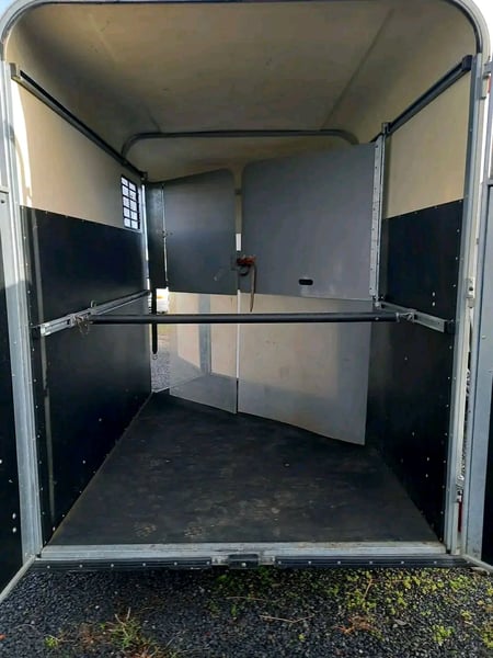 Waga na pusto: 880 kg. DMC: 2400 kg Przyczepa dwuosobowa z transportem w układzie diagonalnym i wyjściem z przodu. Przyczepa z poliestru, zawieszenie na niezależnych kołach, podłoga z polietylenu odpornego na gnicie.