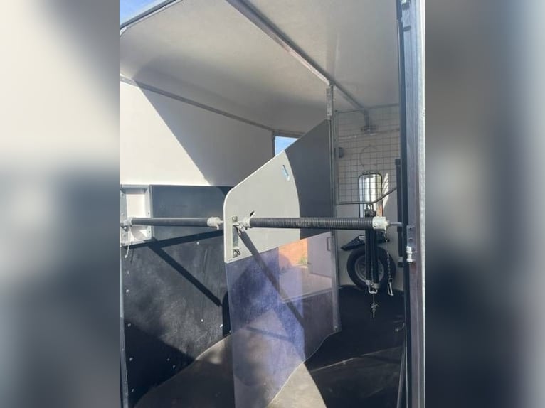 PTAC 2000 kg – PV 750 kg. Pferde mit Vorderachse, große vordere Ausfahrt, integrierte Sattelkammer, Innenbeleuchtung, Überwachungskamera. Zentraler vorderer Fenster, 2 seitliche Schiebetüren und Schutzgitter.