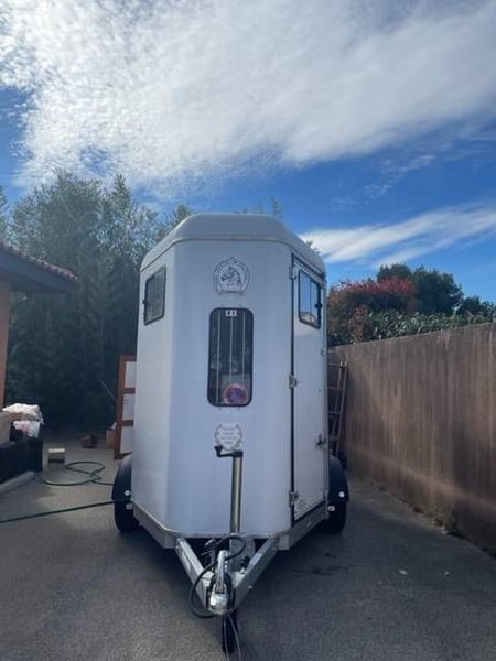 PTAC 2000 kg – PV 750 kg. Chevaux tête avant, Grande sortie avant, Sellerie intégrée, Lumière intérieure, Caméra de surveillance Hublot central avant, 2 baies coulissantes latérales et grille de protection.