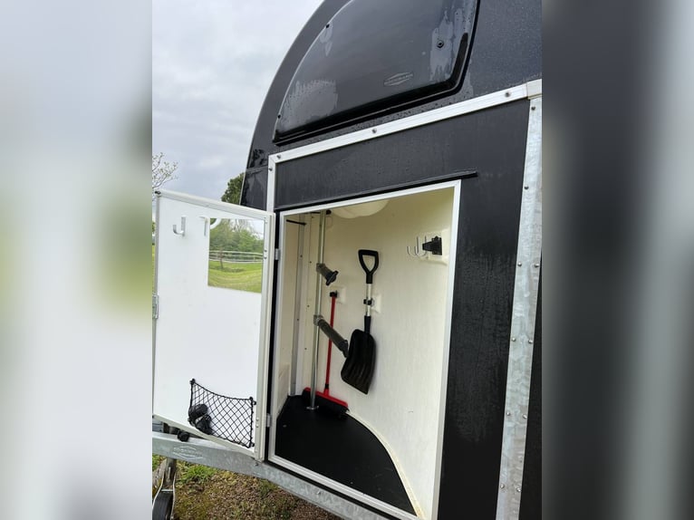 2 Pferdeplätze. Neue Reifen, Fohlen-Gitter und Fohlenstange. Neue Polster für die Bruststange. Allgemein guter Zustand. Leergewicht 670 Kilogramm. Zulässiges Gesamtgewicht: 2000 Kilogramm. Ideal für große Pferde.
