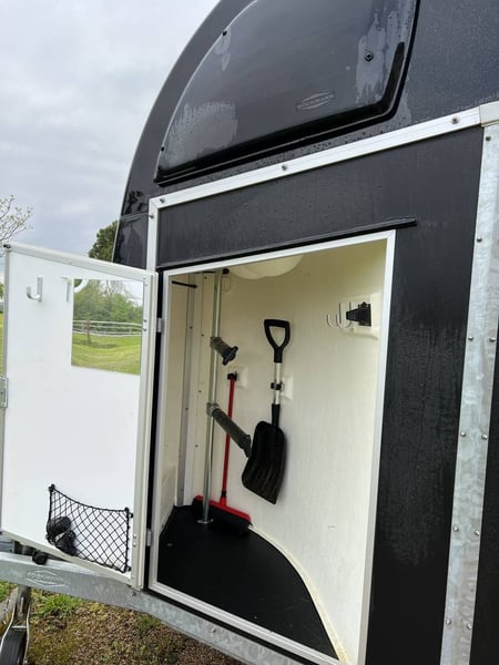 Two horse stalls. New tires, foal grille, and mare bar. New breastplate pads. Overall good condition. Unladen weight: 670 kg Maximum authorized mass (MAM): 2000 kg Ideal for large horses.
