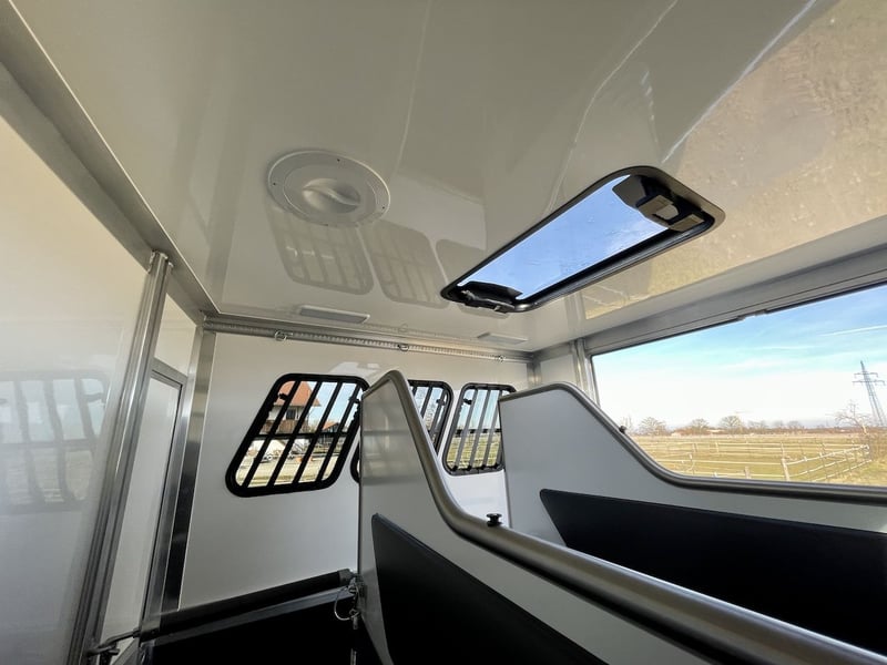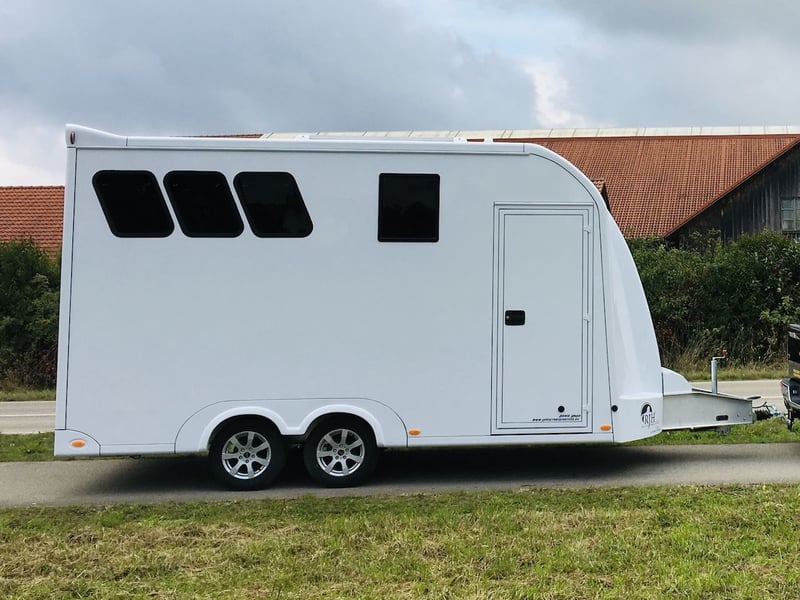 RJH 675 Trailer für 3 Pferde mit großer Wohnung, Dusche und Doppelbett – Gebrauchtfahrzeug EZ 03/2023, 3.500 kg zulässiges Gesamtgewicht Extras wie Klimaanlage sowie eine mobile Induktionsplatte bereits ausgerüstet/vorhanden. RJH-Pferdeanhänger – Komfort & Flexibilität für Reiter und Pferd Der RJH-Pferdeanhänger mit drei Stellplätzen und großzügiger Wohnkabine ist die ideale Alternative zum großen Pferdetransporter. Mit 6,75 m Länge bietet er reichlich Platz für Ihre Pferde und höchsten Wohnkomfort für Sie – perfekt für Turnierwochenenden und Reisen! Maximaler Wohnkomfort - Gemütliche Sitzgruppe mit Tisch - Hochklappbares Doppelbett für optimale Raumnutzung - Küchenzeile mit Waschbecken, Kühlschrank & Stauraum - Separater Sanitärbereich mit Duschkabine - Winterfeste Wasserversorgung Optimale Bedingungen für Ihre Pferde - Großzügiges, stabiles Pferdeabteil mit Spezialtrennwänden - Rutschfester Softgummi-Boden für sicheren Stand - Exzellente Belüftung durch Dachluke, Seitenfenster & Lüfter - Diagonale Stellplätze für entspannteres Reisen Hochwertige Ausstattung - Leichtbauweise: Stabiler Aluminiumrahmen & langlebiger Aluminiumboden - Winterfest & klimatisiert: Hervorragende Isolierung bis -20°C - Beleuchtung: LED-Nachtlicht & leistungsstarke Rampenstrahler - Unabhängige Bordelektronik: 12-V-Bordnetz & 230-V-Außenanschluss - Fahrwerk & Sicherheit: Robustes Chassis, 15-Zoll-Alufelgen & Aluminium-Heckrampe Weitere Informationen und Bilder gerne jederzeit auf Anfrage. Irrtümer und Zwischenverkauf vorbehalten.