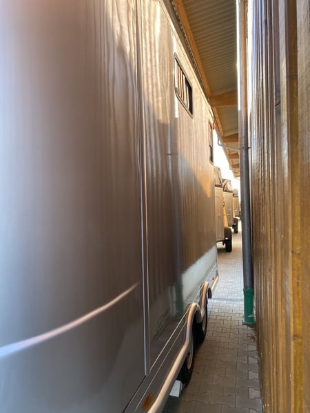 Sprzedam używaną przyczepę do koni Steinsberger / Dickenherr Anka na 2 konie Wyposażenie / Akcesoria Z tyłu: Guma między ściankami działowymi Koryta na paszę Siatki na siano Haki do przypinania Duże drzwi z tyłu Ochrona dla ogierów / przed ugryzieniem Z przodu: Różne uchwyty / haki na wędzidło, siodło, bat, miotłę 2 przegrody do przechowywania w tym skrzynki Kanister na wodę Łopatka do paszy Łopata Zbieracz obornika Mobilny uchwyt na siodło Krzesło kempingowe Podnośnik Pasujący pas Lusterko Mata podłogowa