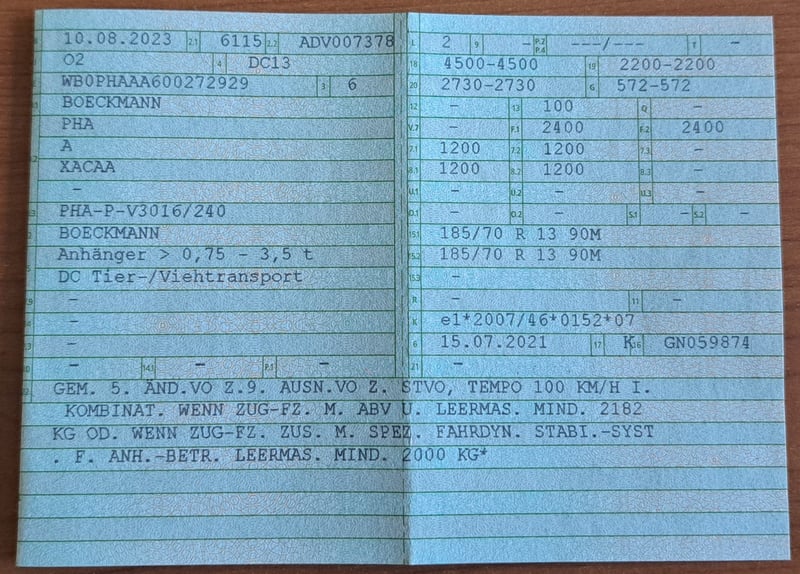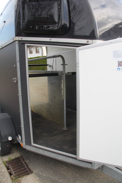 2-Pferde-Anhänger von Böckmann zu verkaufen, Modell "Duo Esprit silver + black". Erstzulassung 10.08.2023, war 6 Monate beim Händler als Mietanhänger im Einsatz, nach dem Kauf (17.06.2024) bei uns nur für den Umzug benutzt (keine Pferde, nur Umzugskartons), gebremst, Radstoßdämpfer, Aluboden, Trittschutz, 8-fach bereift (WR und SR), TÜV 06/2026, auf Wunsch neu. Absolut neuwertiger Zustand. VB: 6600,-€