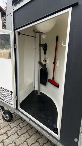 Zum Verkauf steht ein Böckmann Duo R Pferdeanhänger aus dem Baujahr 2017. Der Anhänger wurde regelmäßig genutzt, befindet sich aber in einem guten Zustand und ist sofort einsatzbereit. TÜV ist noch bis Oktober 2026. Ausstattung & Details: - Aluboden - abschließbare Sattelkammer - mit Bodenschutzmatte - mit Seitenschutzleisten - Platz für 2 Pferde - Zulassung für 100 km/h Zustand: - Technisch einwandfrei - Die mittlere Gummistrebe zum Einhaken der Plane hinten fehlt, kann man aber trotzdem schließen (siehe Foto) Technische Daten: - Gesamtgewicht: 2400 kg - Nutzlast: 1509 kg - Gesamtlänge: 4500 mm - Gesamthöhe: 2730 mm Besichtigung nach Absprache möglich. Bei Interesse gerne melden. Auch telefonisch unter 015140029632 möglich. Privatverkauf, keine Garantie oder Rücknahme.