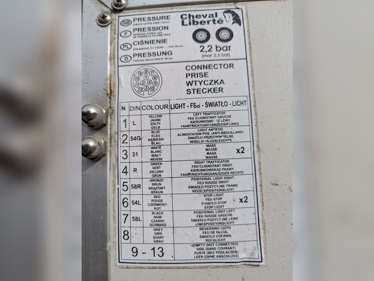 Remorque à vendre en raison de la retrait du cheval, en parfait état et avec un contrôle technique valable jusqu'à la fin 2026. Électronique et pneus en excellent état, dernier contrôle technique sans défaut. Le plancher en bois est sec, la remorque est étanche, et une couverture pour l'hiver est incluse.